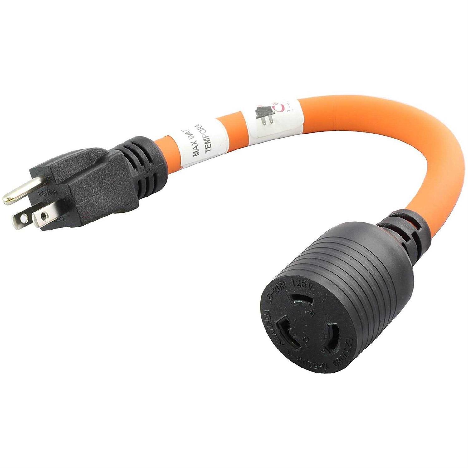 AC WORKS 1 ft. 12/3 STW 15 Amp NEMA 5-15P Household Plug to 20 Amp L5-20R Locking Adapter Cord