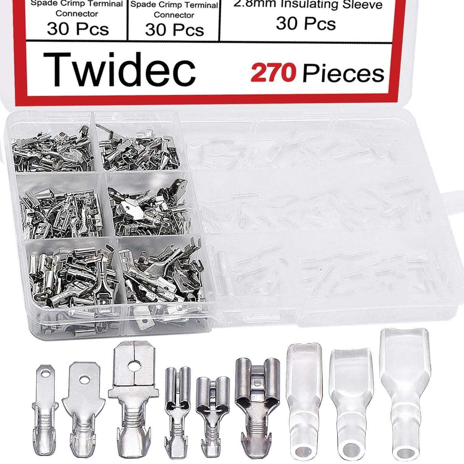 Twidec/360Pcs 2.8/4.8/6.3mm Quick Splice Male and Female Wire Spade Connector Crimp Terminal Block Assortment Kit with Insulating Sleeve