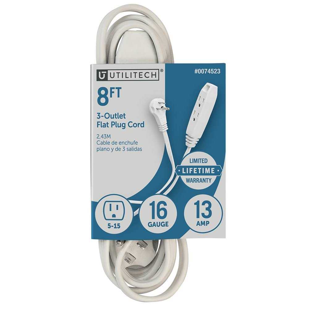 Utilitech 8-ft 16 / 3-Prong Indoor Spt-2 Light Duty Flat Plug Extension Cord in White UT930608