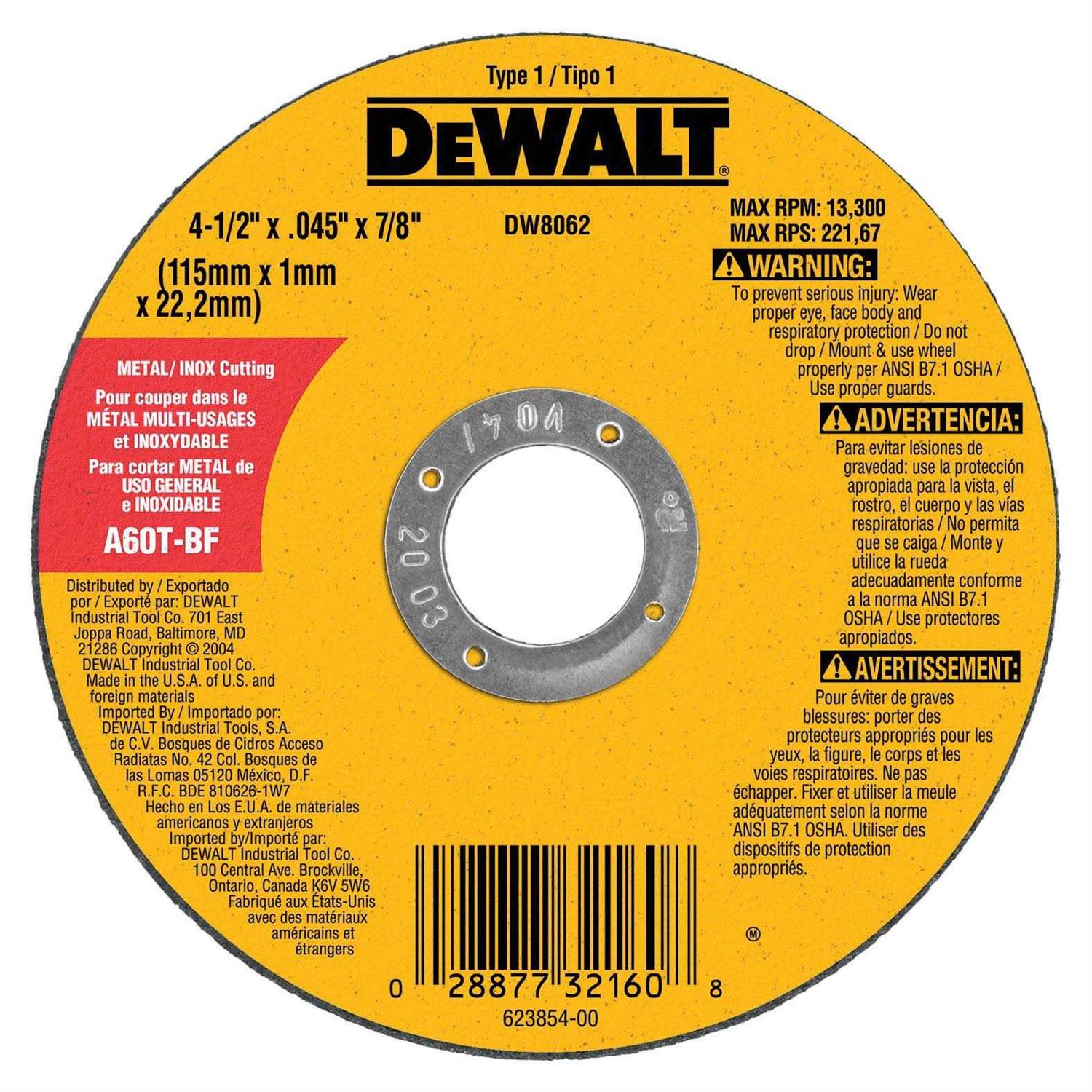 DeWalt DW8062 4-1/2 x .045 x 7/8 Metal Cut-Off Wheel