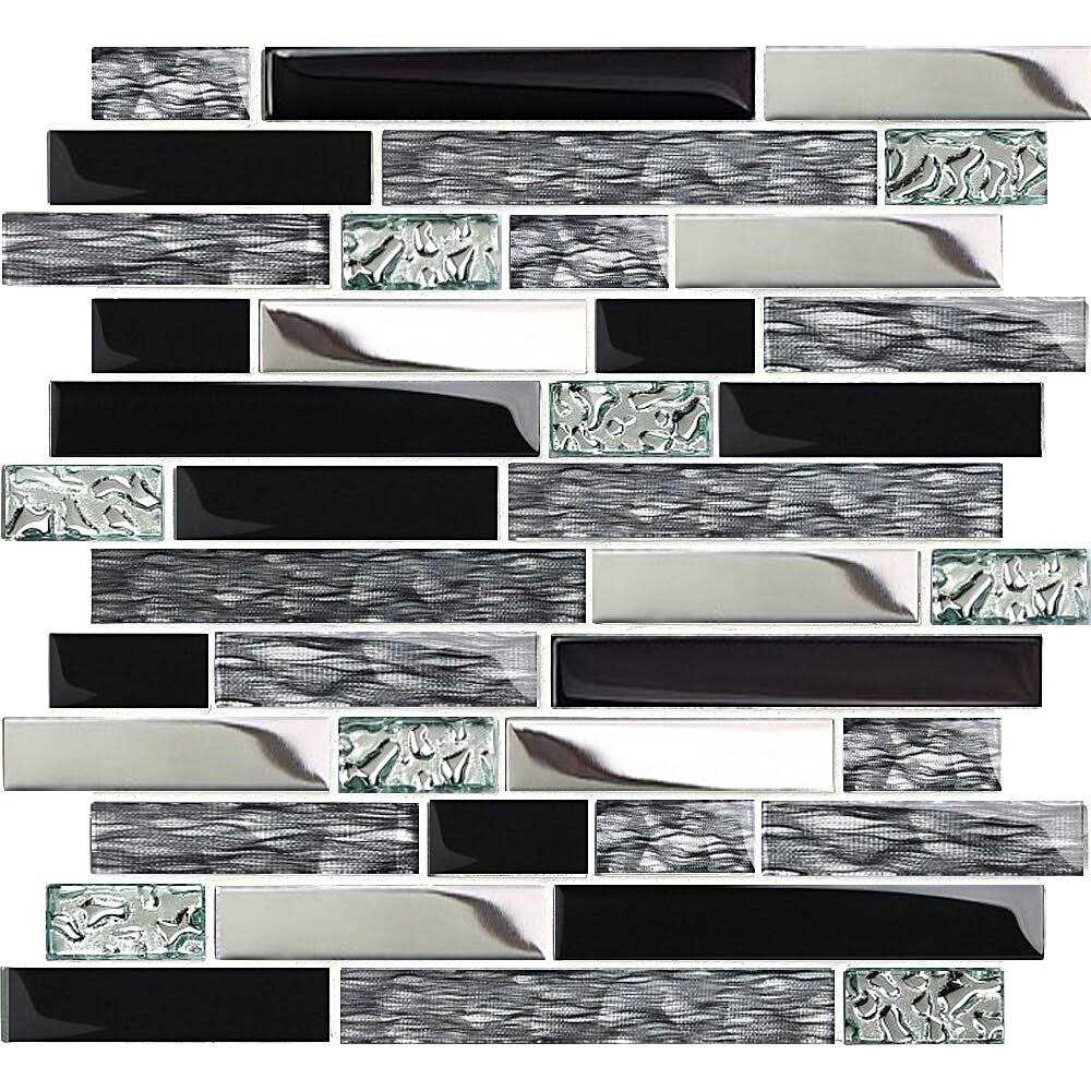 12″ x 12″ Glass/Metal Mosaic Sheet Subway Wall Tile (Set of 5) Blujellyfish