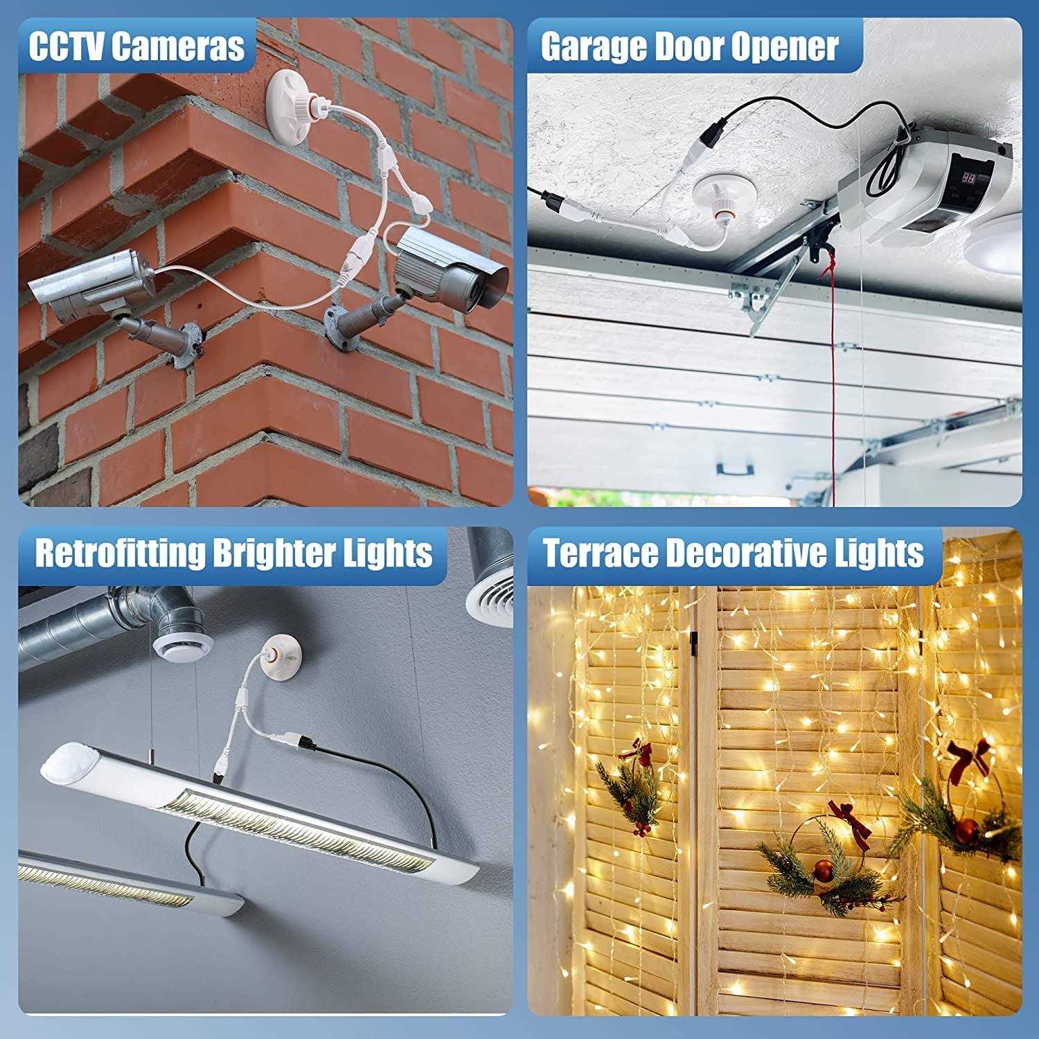 【Get Power Easier】This Light Bulb Socket Adapter Is Compatible With 2 And 3 Prongs, Just Take 2 Seconds To Screw It Into The E26/E27 Light Socket To Power 2 And 3 Prongs Appliances. Nice For Halloween Thanksgiving Christmas Decoration Light. 【Dual Socket Outlet Design】 The Light Socket Adapter Plug Has A Total Length Of 15″ With A 4″ Extension Cord Per Socket. You Can Connect The 3 Or 2 Prongs Plug For Using At The Same Time Without Repeatedly Plugging And Unplugging. More Freedom In Angle Options And Space. 【3 Prong Light Socket Adapter】The Light Bulb Socket Is A 3-Prong Design That Supports Both 2-Prong And 3-Prong, Which Can Use For Any Direction Plug-In, So You Can Use Both Plug-In Appliances And A Wide Range Of Applications 【More Important Information】: The Bulb Socket Adapter Is Powered By 125v Ac, 10a, 1250w, With 4 Inch Extension Cord For Each Outlet, Which Is Good For You To Plug In Any Direction(Note: When The Current Exceeds 10a, The Fuse Will Be Cut Off To Avoid Fire Danger, It Is Recommended Not To Use High Current For A Long Time) 2 in 1 Light Bulb Socket to Plug Adapter Specifications : 125VAC, 10A, 1250W.( E26/E27) Please be careful not to exceed the rated value. Avoid using in wet areas. What’s the Light Bulb Socket Adapter? It is also called Light Bulb Socket to Plug Converter. It’s a gadget that turns an old light bulb socket into a power outlet. For this, When you need to use electricity, you don’t need to spend a lot of time and money to rewire your garage, balcony, patio, backyard, basement. Nice for Halloween Thanksgiving Christmas decoration light. Why Our Light Socket Adapter Outshines as the Best Among the ALL? Reason #1 Innovative Dual-head and Extension Cord Design – Adapted to more scenarios. You can use 2 appliances at the same time without having to plug and unplug them repeatedly, and the 4+4 inches extension cord will help you operate more flexibly in using power tools. Reason #2 Upgraded VW1-Grade Flame Retardant PVC – Guarding your safety. With a heat resistance of up to 105°C, you don’t need to worry about safety as long as it is used within the rated value. If you meet the problems in the process of using the light socket plug adapter, please click the “Your account” –“Orders” –“Adapter order –” Get help” Notes: Manual measurement, please allow slight errors on size. The color may exist a slight difference due to different screen displays.