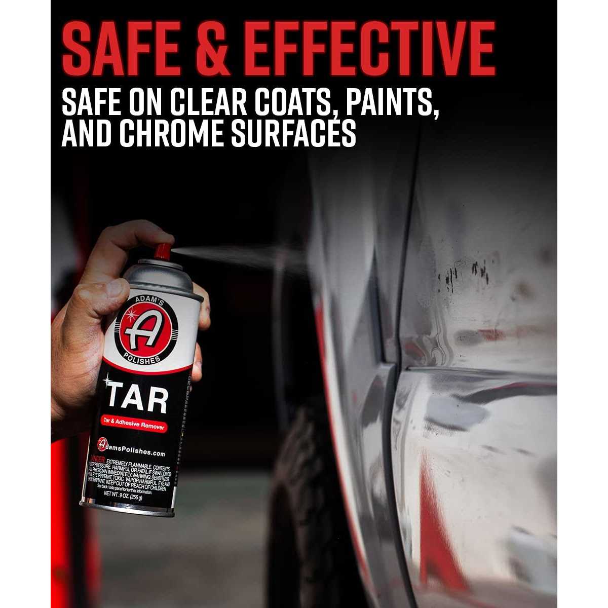 RTU, POWERFUL SOLVENT BASED FORMULA! Adams TAR quickly dissolves and loosens difficult to remove contaminants such as tar, sap, grease, asphalt, glue and adhesive residues.. ELIMINATE TOUGH CONTAMINANTS IN SECONDS! Carefully crafted, unique blend of powerful solvents, natural citrus oils, and alcohols that have been found to be ridiculously effective on even baked on contaminants that other all-purpose cleaners cant seem to budge.. SUITABLE FOR ALL CLEAR COATS, PAINTS, AND CHROME! Adams Tar, Adhesive, & Residue Remover is safe for all clear coats, paints and chromes. Safely remove tough stains without damaging your delicate paint or metal surfaces.. VERSATILE, FAST ACTING FORMULA! Remove vehicle badges, stickers, weights, road tar, and track marks with ease. The solvent based aerosol formula makes quick work of otherwise difficult blemishes..,Hardware > Tools,Adam s Polishes