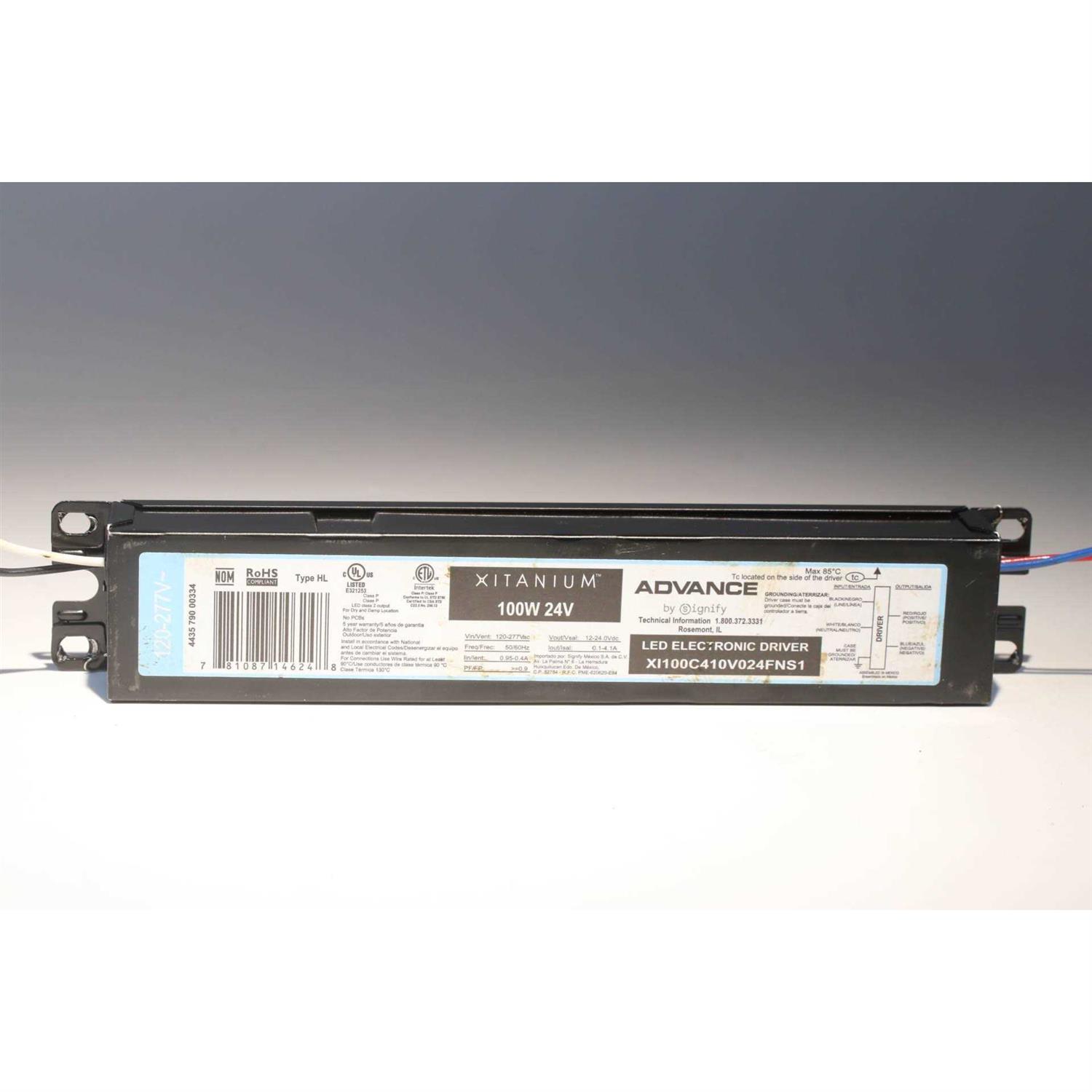 - Advance XI100C410V024FNS1 Electronic LED Driver, Non-Dimming, 120-277V:In, 100W, 12-24Vdc