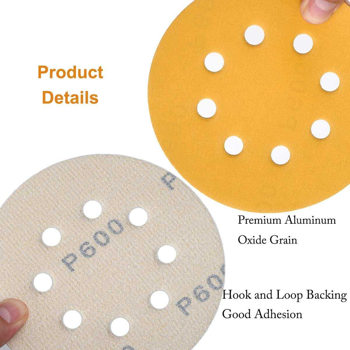 Aiyard 5-Inch 8-Hole Hook and Loop Sanding Discs 600-Grit Random Orbit Sandpaper, 100-Pack