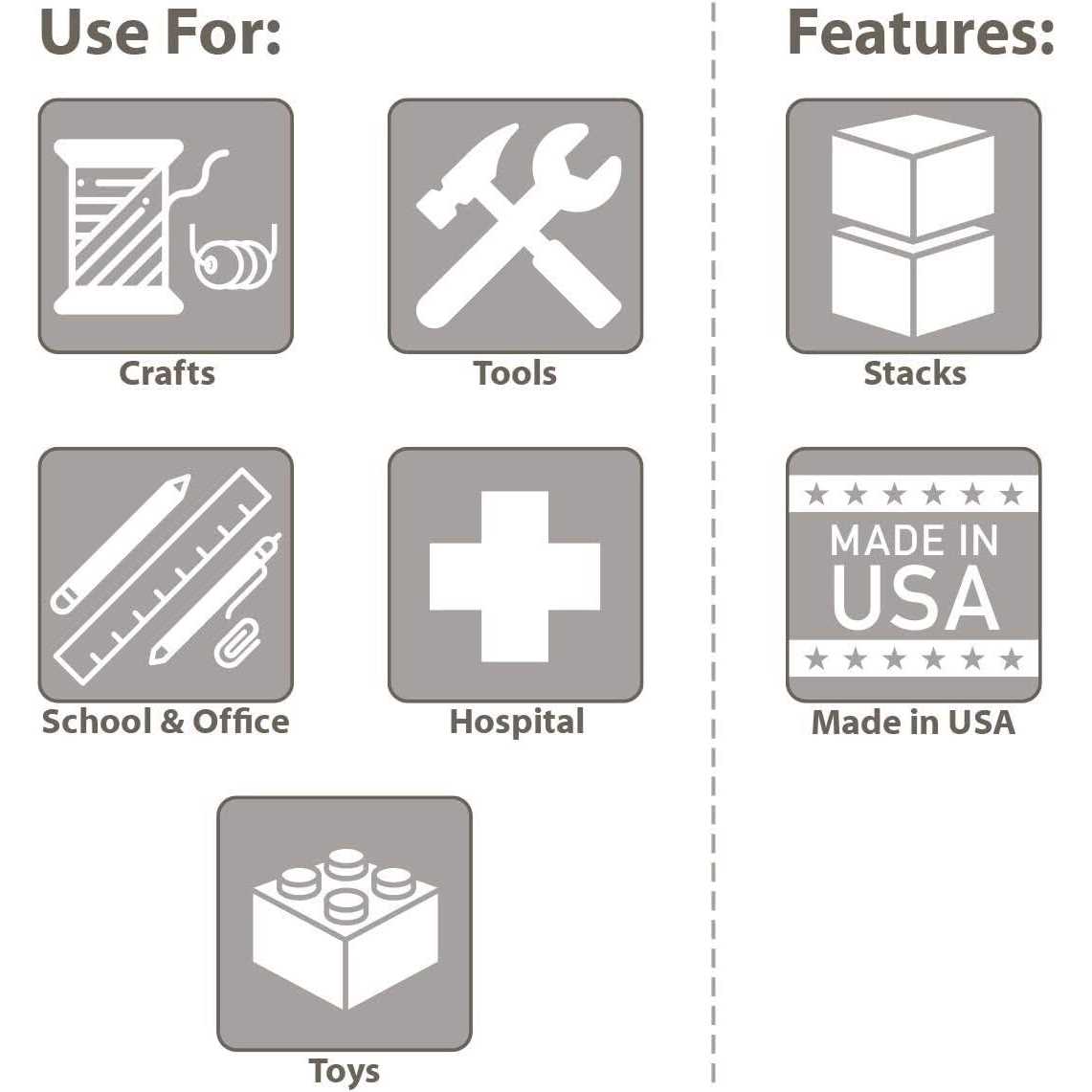 Tool Boxes by Akro-Mils. Details:These handy Akro-Mils plastic toolboxes are ideal for storing small hardware and hand tools, arts and crafts supplies, and more. Its metal lock-tight latch won’t pop open, making it great for traveling and easy to carry with a comfortable handle. Create a manicure supplies organizer box. Organize toys, supplies, or snacks to take with you on car trips. Perfect for creating a Grab-and-Go-Box for emergency supplies, such as a first aid kit. Teachers organize your classroom with school supplies.