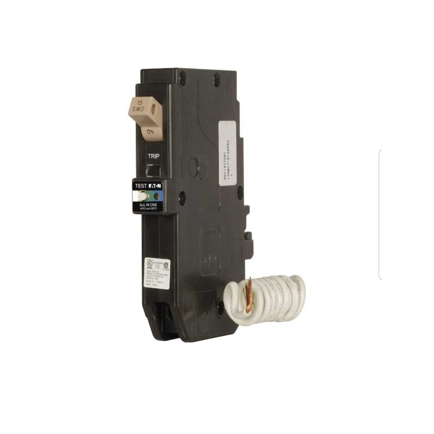 Compatible for use in Eaton Type CH load centers and meter breaker panels. Provides one device for both AFCI and GFCI protection, allowing for a single point of reset. Offers complete protection from AFCI and GFCI for the entire circuit, including home-runs. Enables a lower installed cost versus other code-approved alternatives by using only one device to achieve both AFCI and GFCI protection. Eaton’s proven reliability of arc-fault detection to reduce unwanted tripping due to interaction with devices or appliances. Integral LED indicates seven different trip causes, reducing troubleshooting time. The AFCI/GFCI circuit interrupter was developed in response to the 2014 national electrical code that now requires AFCI protection in kitchens and laundry areas as well as the historical requirement of ground fault protection.