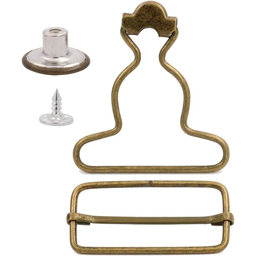 Buckles by Amanaote. Details:Great for clothes, handbag and backpack decoration, suspender accessories and many other craft projects.1 set include 1pcs suspender buckles,1 pcs sliding rectangle,1 Pcs button and 1 pcs screw.