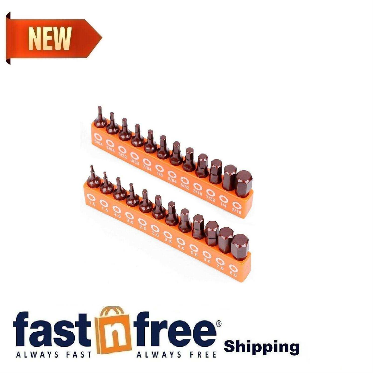 24-Piece Hex Head Allen Wrench Drill Bit Set, Metric and SAE S2 Steel Hex Bits Set, 1″ Long