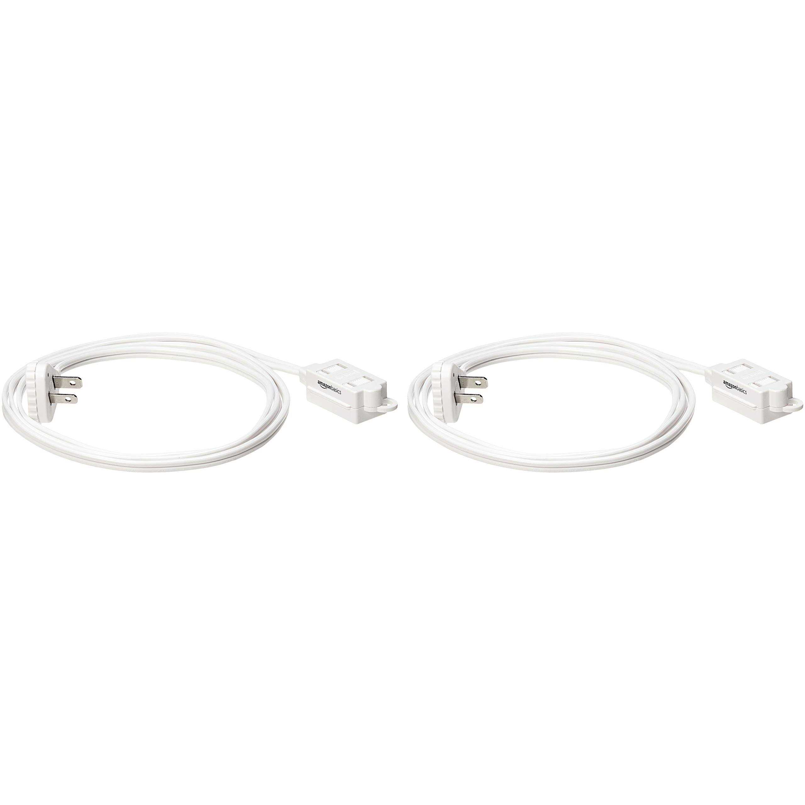 Amazon Basics 6-Foot 2-Prong Indoor Extension Cord Power Strip – Flat Plug – 13 Amps, 1625 Watts, 125 VAC – 2-Pack, White