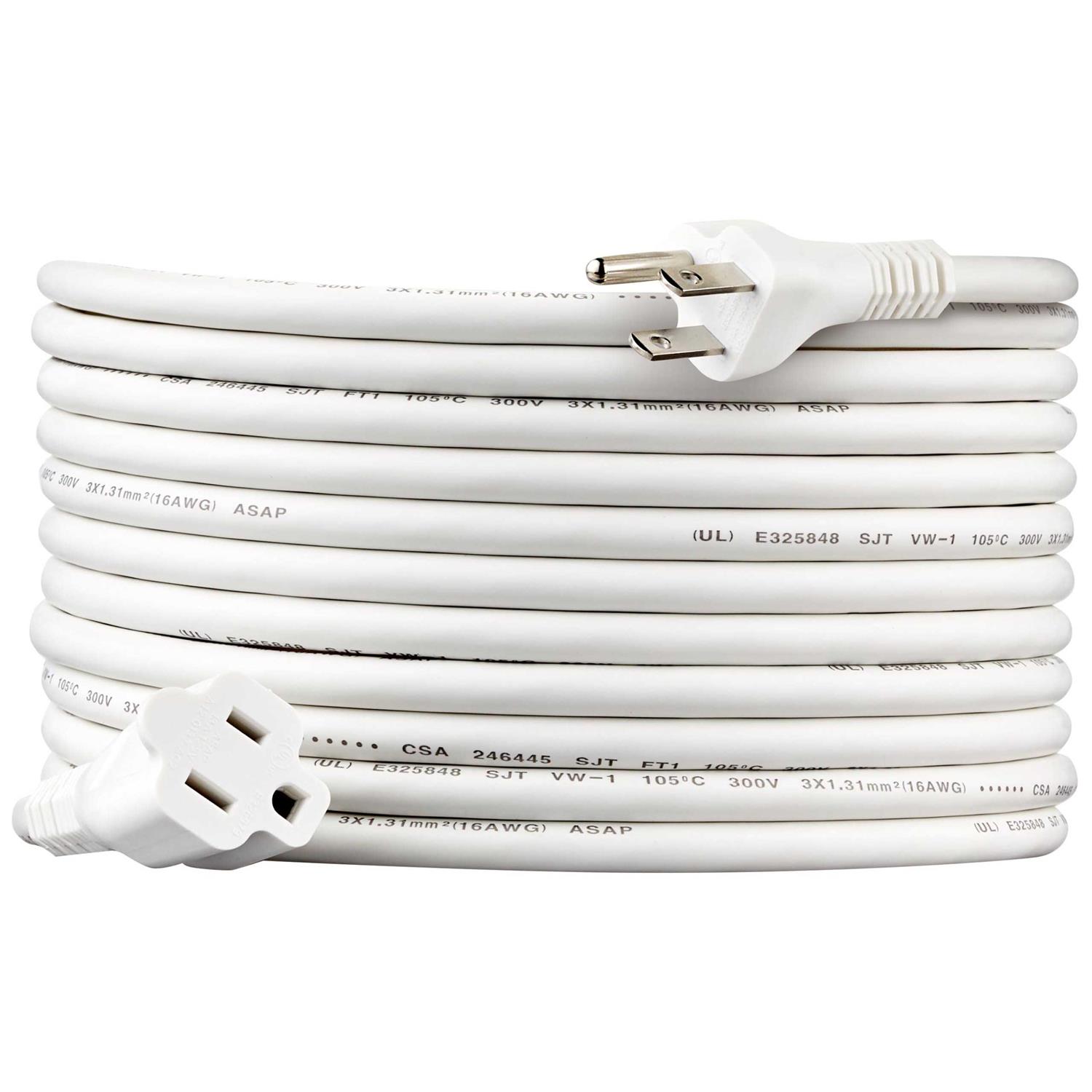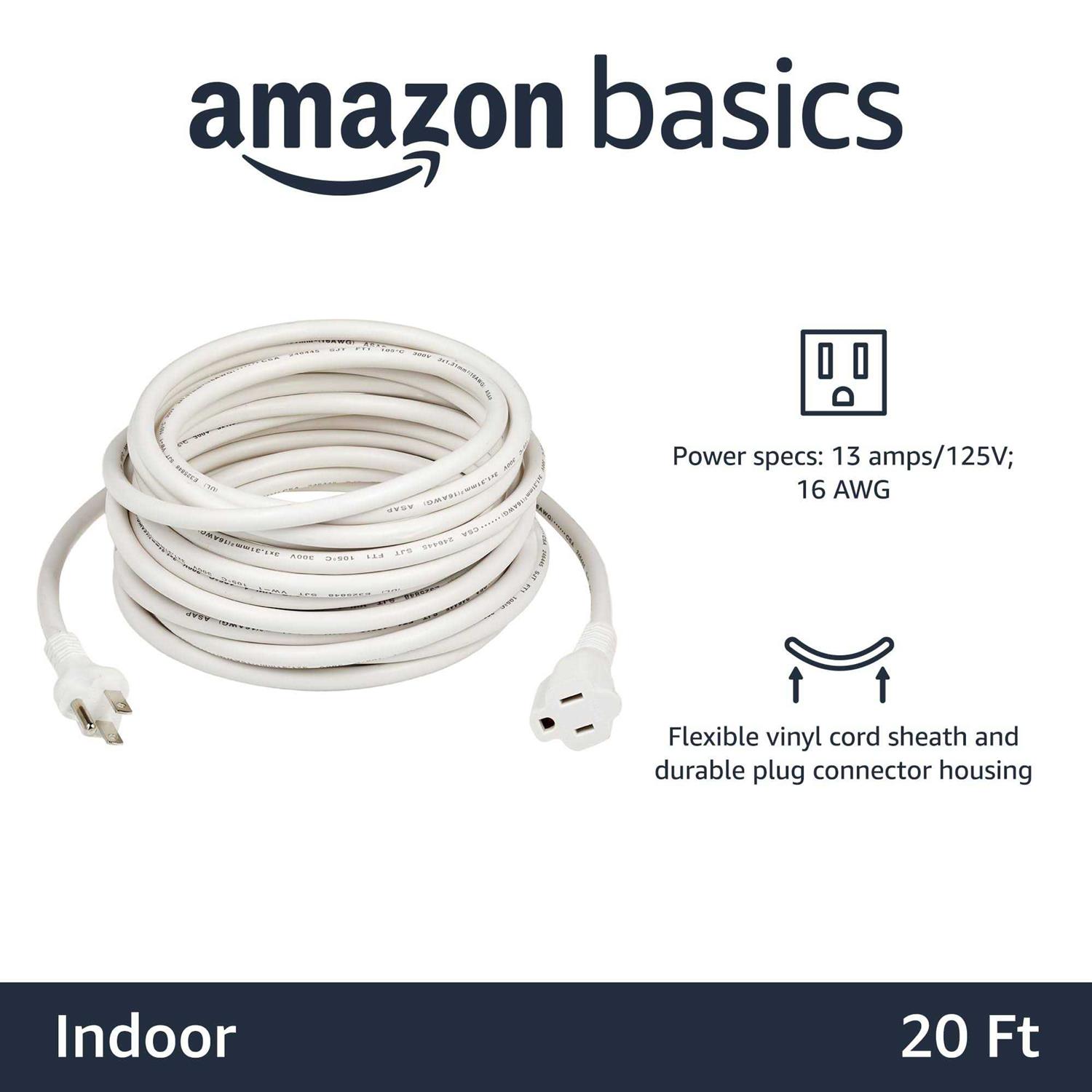 INCLUDES: 20 foot extension cord in White; ideal for extending power when needed DEVICE COMPATIBILITY: 13 amp/125V power; 16 AWG VERSATILE: Use indoors with consumer electronics, tools, media equipment, and more EASY TO USE: Plugs into any standard 3-prong power outlet; accepts 2- or 3-prong device plugs