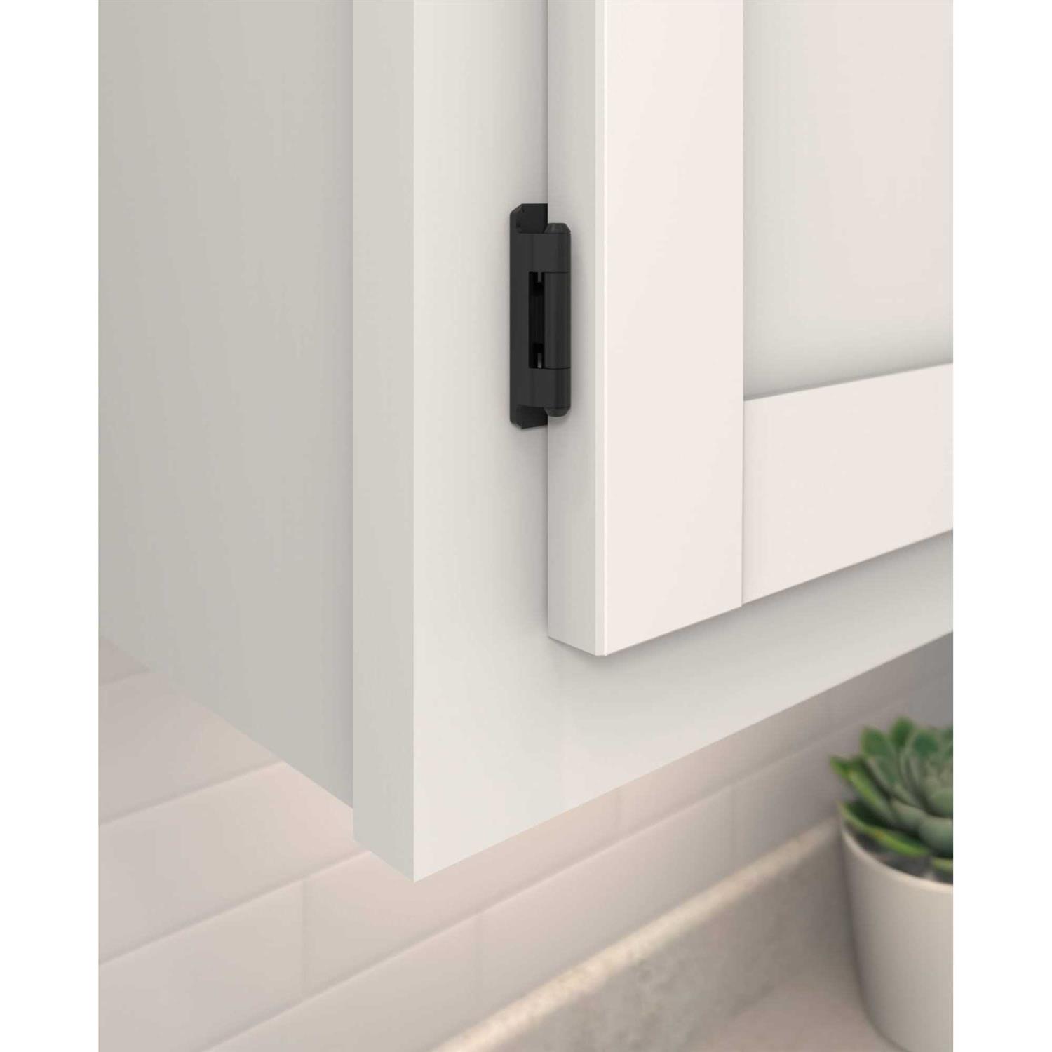 Please note, these are not overlay hinges. This inset hinge only works for face-frame cabinets. Heavy duty steel contruction with a decorative Matte Black finish. Made for a face frame cabinet style commonly used in kitchens and bathrooms, or on furniture. There are slotted holes on the cabinet hinge frame wing for easy adjustment. Dual-spring mechanism for quiet, consistent self-closing power. The included door bumpers soften the sound of the cabinet door snapping closed. Dual-spring mechanism for quiet, consistent self-closing power. The included door bumpers soften the sound of the cabinet door snapping closed. Built to last – Every hinge series is tested for durability in conditions exceeding all KCMA certification requirements.