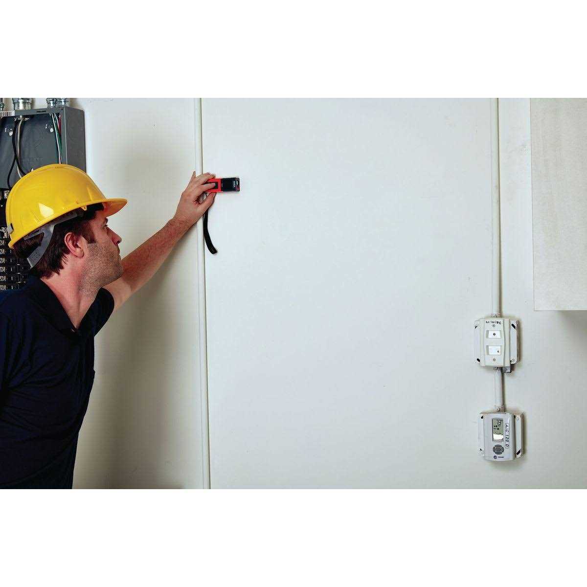 This laser distance meter takes measurements up to 100 ft. at the push of a button. Simply aim the unit and press the button, then get the distance on the easy-to-read display.