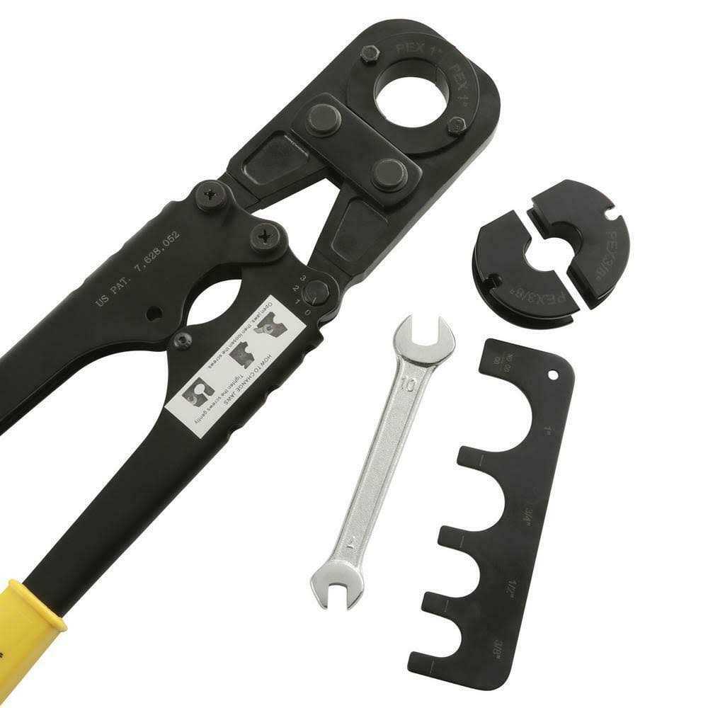 Multi-Head PEX Crimp Tool KitProduct OverviewAcquire the Apollo Multi-Head PEX Crimp Tool Kit for all of your PEX crimp ring fastening jobs. Use with 3/8 in., 1/2 in., 3/4 in. and 1 in. crimp rings. All components fit in a customized carrying case. Includes 4 interchangeable jaws for use with 3/8 in., 1/2 in., 3/4 in. and 1 in. crimp rings Includes go/no-go gauge Durable plastic case for protection and storage 100 lb. crimping force Meets ASTM 1807 standards Comfort grip handles