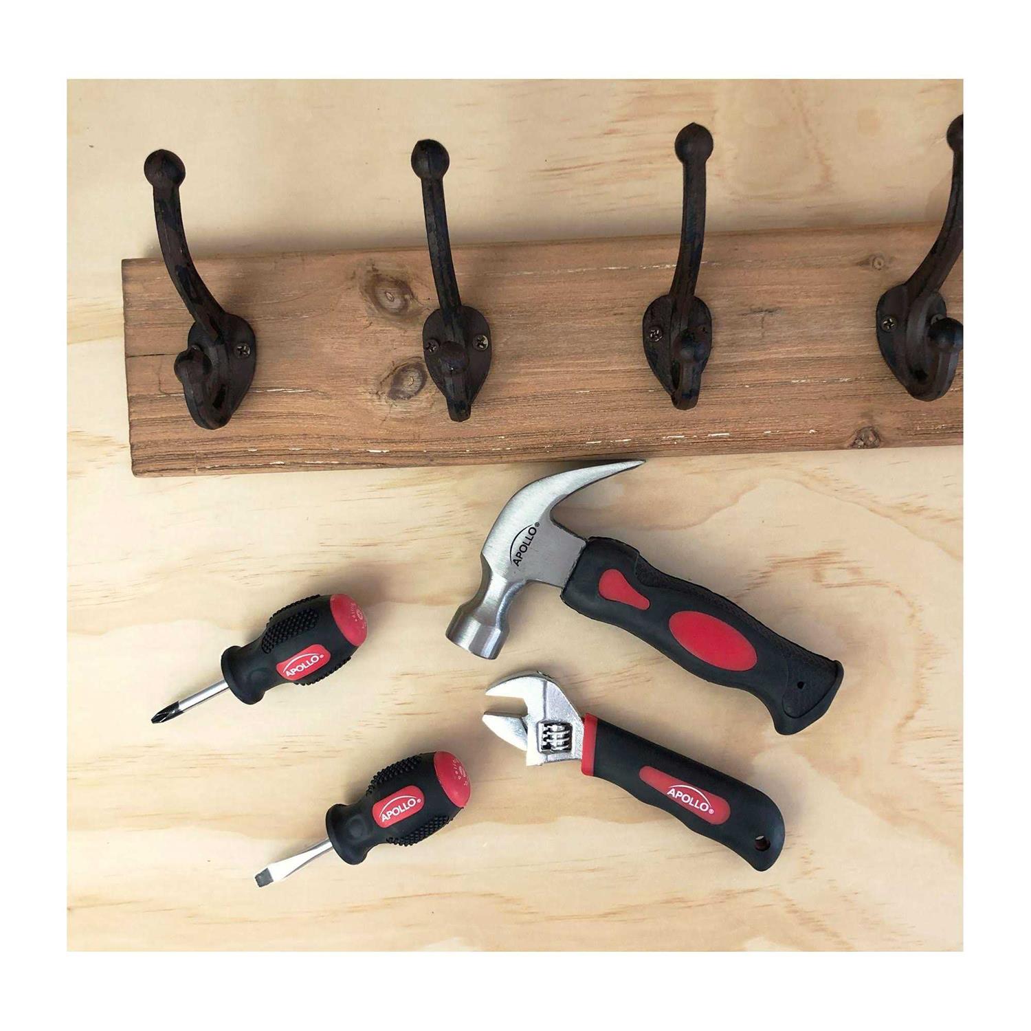 They are basic and essential for quick, everyday repairs. Use them to hang pictures, tighten leaky faucets and more. These tools are constructed of heat-treated carbon steel for durability and will provide you with years of use. They feature soft-grip handles, making them comfortable for extended use. This hand tool set comes with nearly everything you need to complete basic repairs with ease. It is a solid choice for new homeowners.