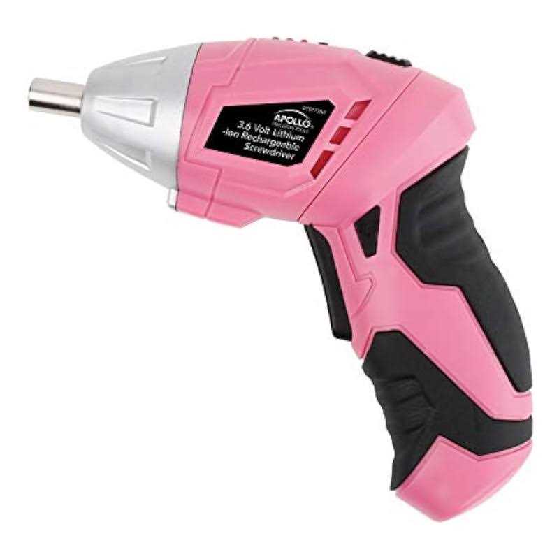 Apollo Tools Dt0773n1 135 Piece Complete Household Tool Kit with 4.8 Volt Cordless Screwdriver and Most Useful Hand Tools and DIY Accessories Pink