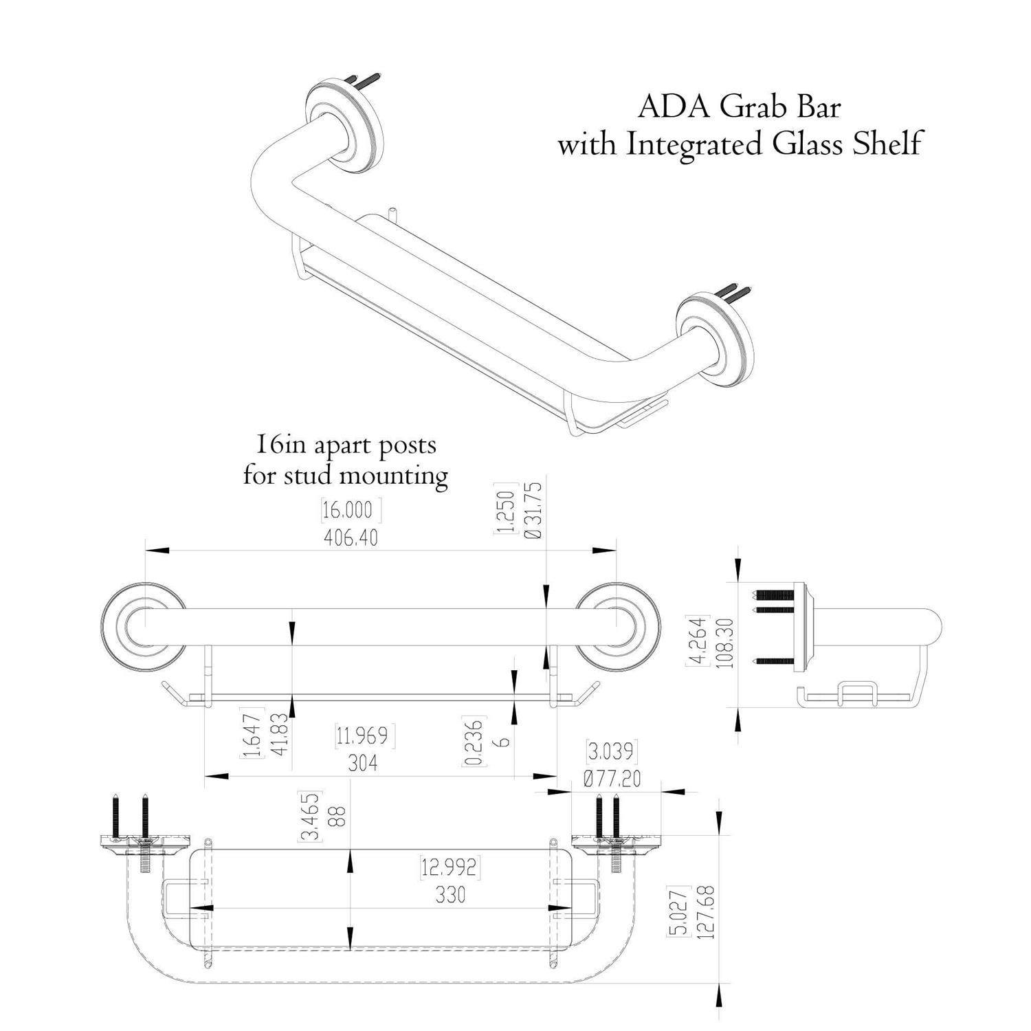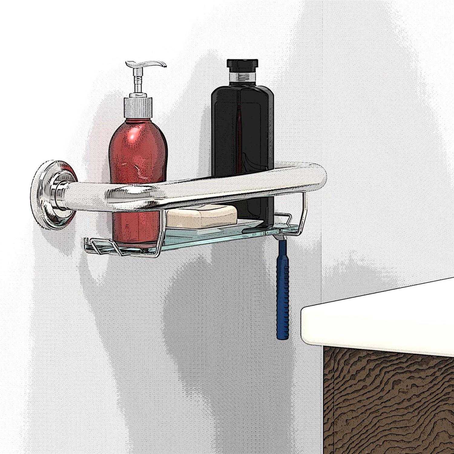 AquaChase ADA Compliant Grab Bar with Glass Shelf for Shower Wall and Bathtubs