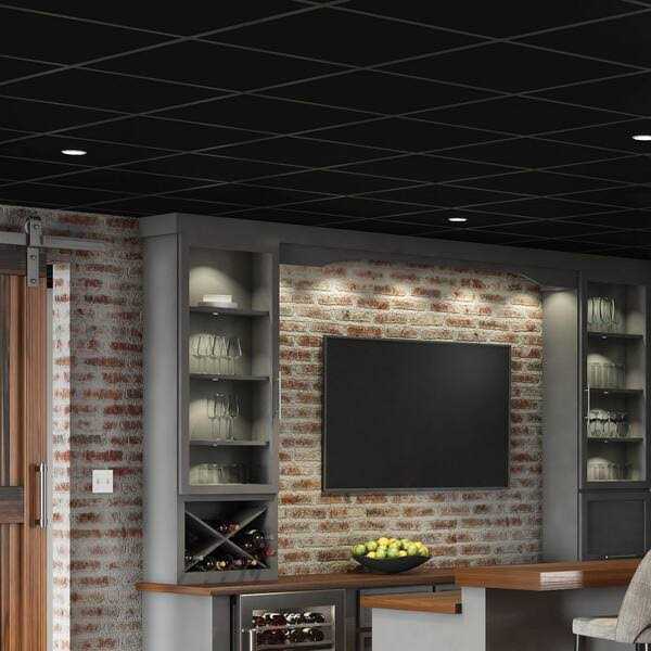 - ideal for basements Square edge panel installs in standard 15/16 in. suspended grid Made of rigid PVC plastic Black, matte finish Easy to clean