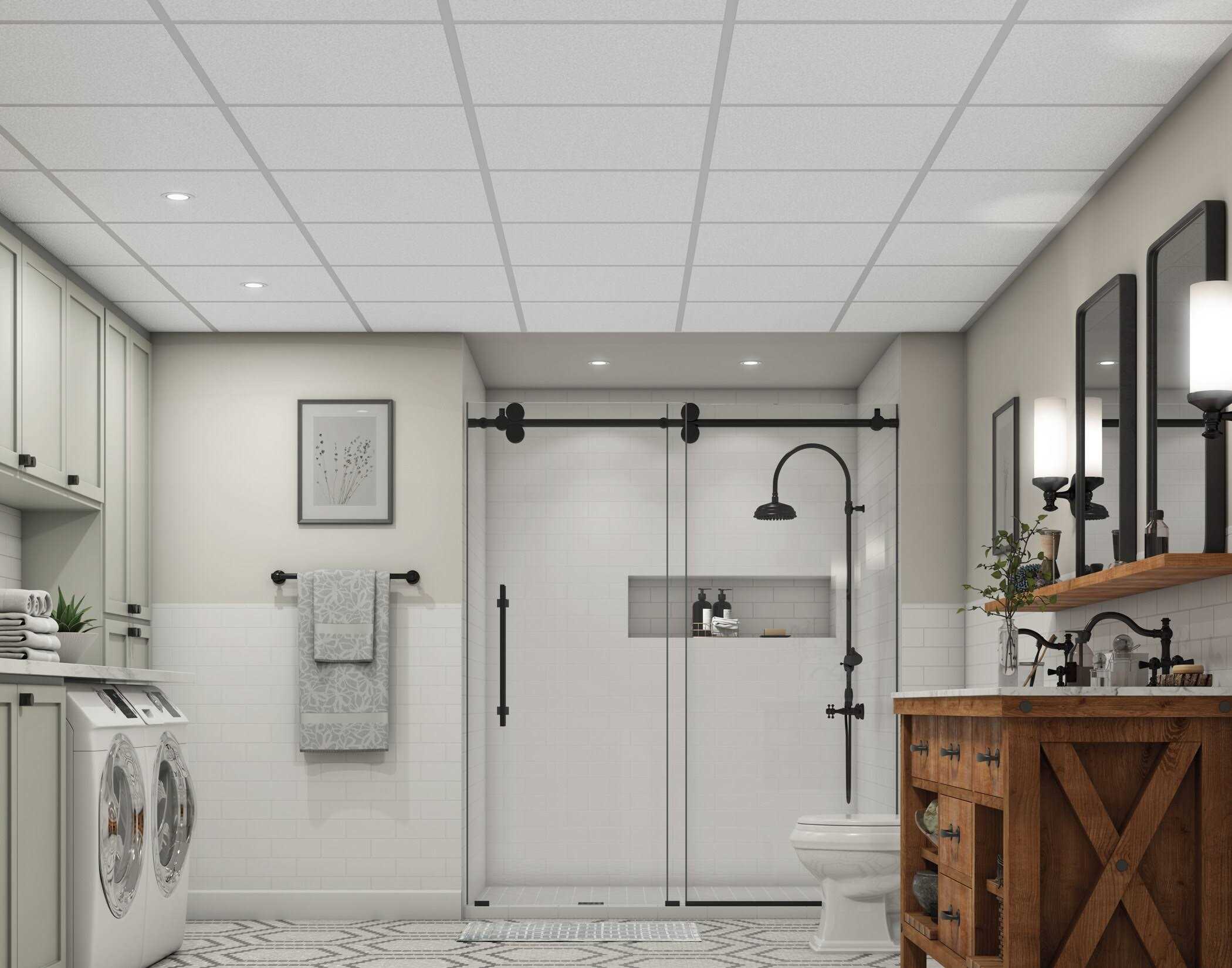 Armstrong EASY ELEGANCE Textured White 2 ft. x 2 ft. ceiling panels are the optimal solution for a variety of spaces, including those where moisture and humidity are a concern. These PVC plastic square-edge ceiling panels are easy to clean, washable, and impact resistant. Maintenance-free Textured White panels install in Armstrong Prelude 15/16 in. Suspended Ceiling Installation System.