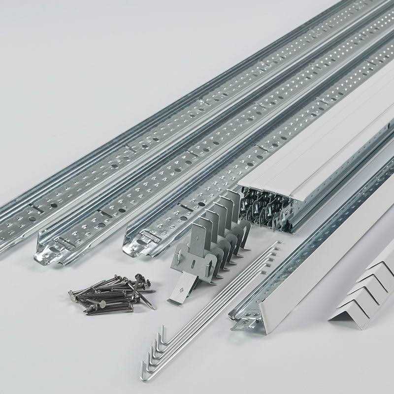 Convenient all-in-one kit that includes everything you need to install 64-sq ft of 2-ft x 2-ft drop ceiling panels. Single person installation with lightweight easy to handle 6-ft main beams. Maximizes ceiling height only 2. 5-in of overhead space needed. QuickHang hardware offers a new way to install a basement drop ceiling system directly to joists more quickly and easily than with hanger wire. No need for shims or furring strips to accommodate uneven joists joist-mounted brackets allow you to easily level grid. Metal components are sturdy durable and coated to protect from rust. Secure end to end connections confirmed by audible clicks. Flexible height system enables you to work around obstructions such as ductwork pipes or cables. Contains three 6-ft main beams nine 4-ft cross tees nine 2-ft cross tees five 6-ft wall moldings six 12-in QuickHang hooks six joist brackets and forty nails.