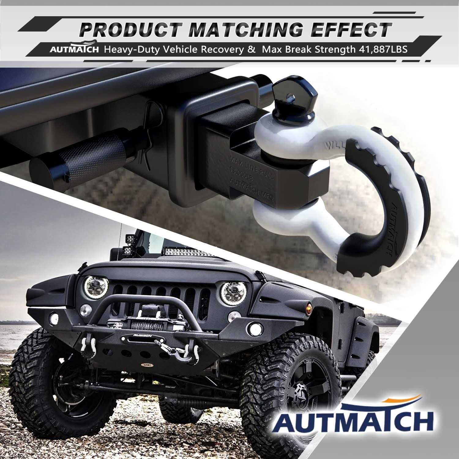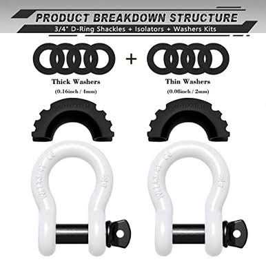 AUTMATCH D Ring Shackle 3/4″ Shackles (2 Pack) 41,887Ibs Break Strength with 7/8″ Screw Pin and Shackle Isolator Washers Kit for Tow Strap Winch Off