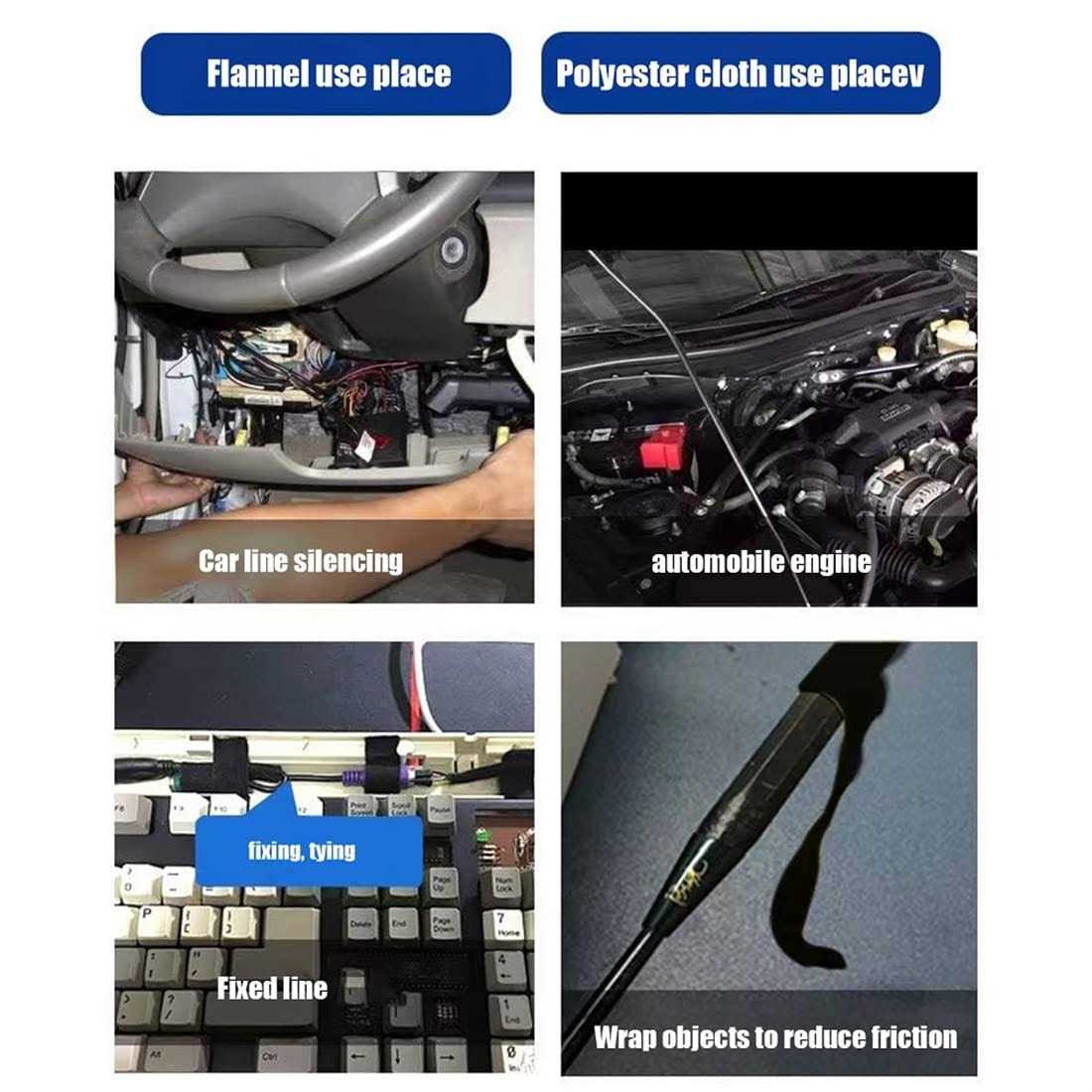 Duct Tape by InfantLY Bright. Details:Description: Bonded wiring tape, product features sound-absorbing PET non-woven tape, natural rubber adhesive. PET non-woven tape is flexible and wear-resistant, resistant to aging, hand-tearing color: black length 15 m, mainly used in cable kits for vehicle internal winding harnesses Mainly used in :cable kits for vehicle internal winding harnesses Temperature range:-40 Celsius -200 Fahrenheit Specifications: Material: PET non.