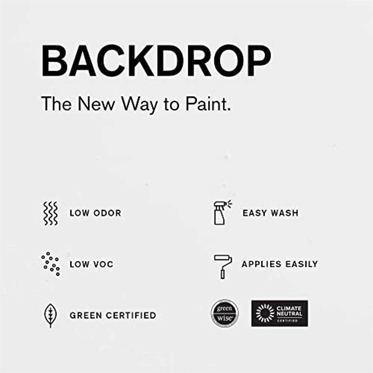 Depending the light, this color can skew blue or green LARGE & REUSABLE SWATCH | Our large 12” x 12” adhesive swatches stick and re-stick so you can see your curated color bigger and on more surfaces. No more messy and expensive sample pots THE NEW WAY TO PAINT | All Backdrop paints are low odor, self-priming, apply easily, have a quick dry time, and come in an award-winning paint can that is easy open, close without a tool, pour, and store GREEN WISE CERTIFIED | Tested and certified as Ultra Low VOC and made without the use of formaldehyde and other harmful off-gassing substances. Backdrop is the first Climate Neutral Certified paint company