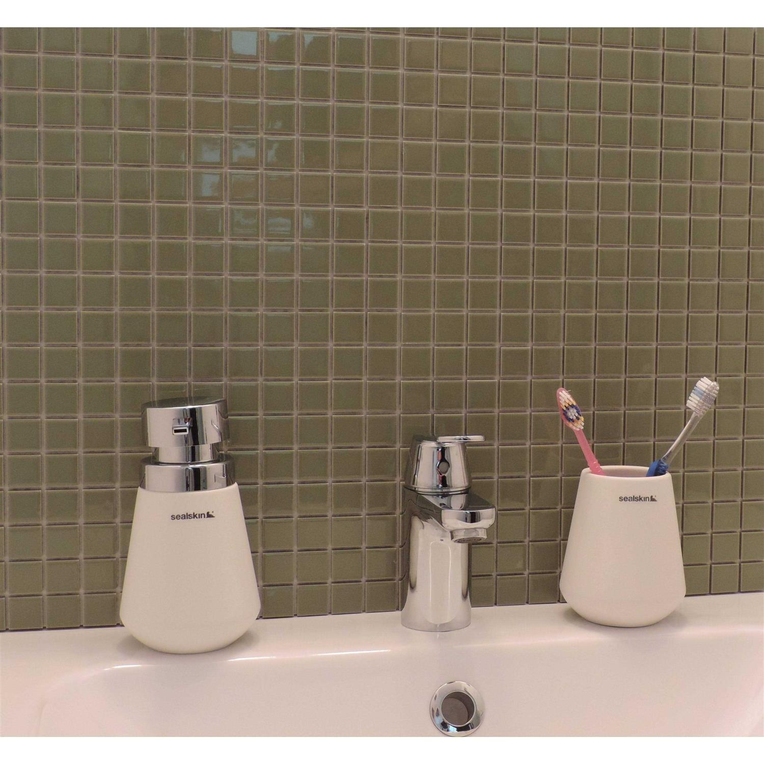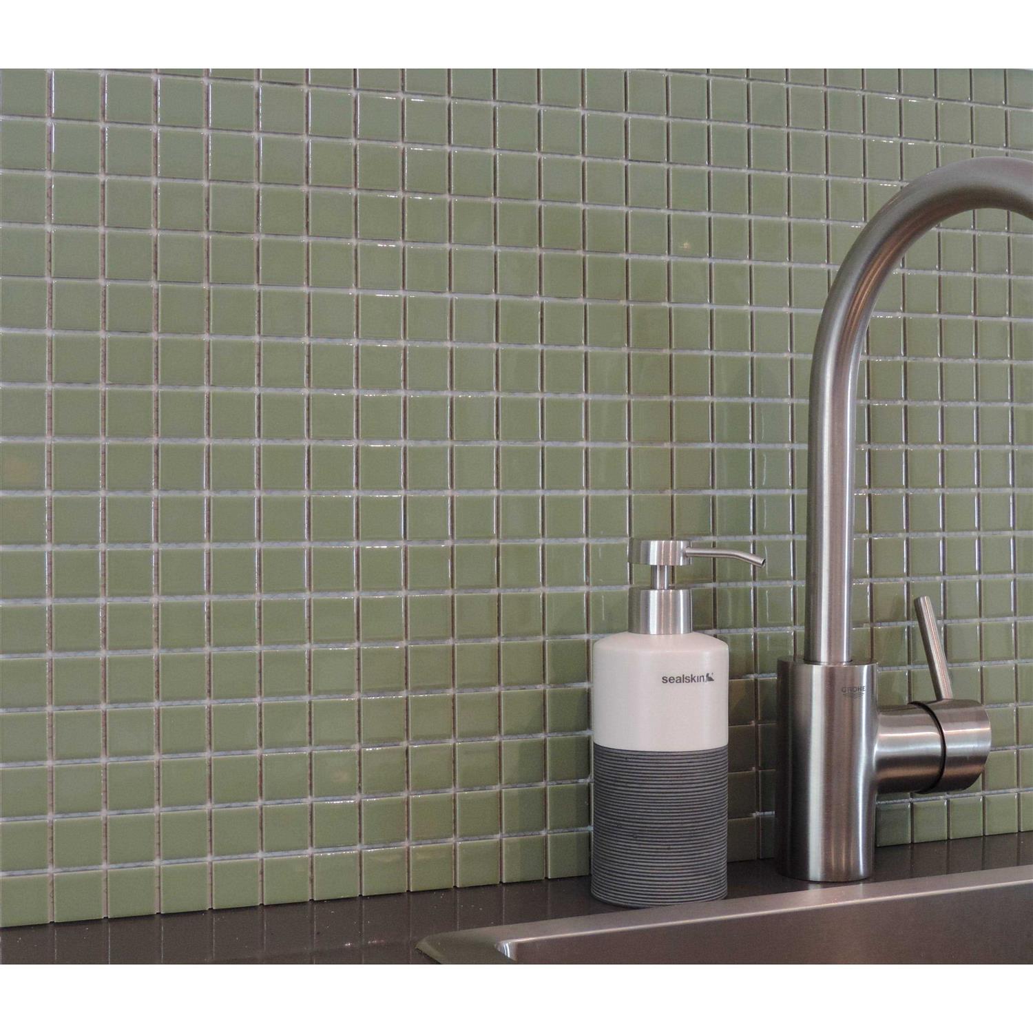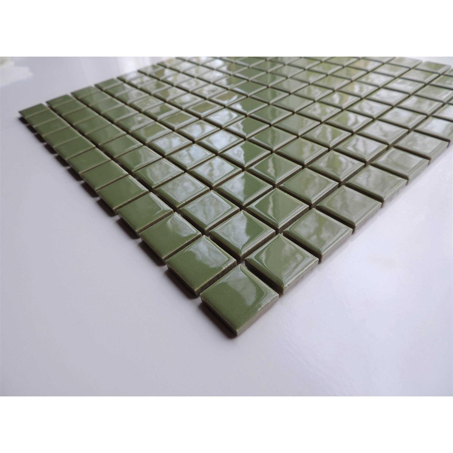 Glazed Porcelain Mosaic Tile Sheet Barcelona 1″x1″ Square Glossy Olive Green, Box 9.7 Sq. ft.