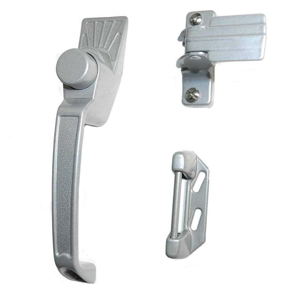 This push bottom handle set is the most popular style for out-swinging doors and is used by many screen patio manufacturers. Constructed of all aluminum and stainless steel components for a long lasting, rust free life. Features a silver finish to match most any decor.