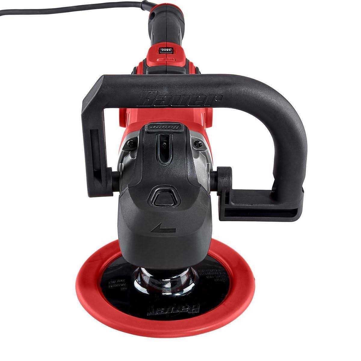 Strong 12 amp motor delivers up to 3500 RPM Dial control with 8 variable speed settings matches speed to application Constant speed and power control automatically applies additional power to motor, maintaining speed under load Controlled start-up for less wax fling-off Large two-finger trigger switch for convenience Lock-on button for continuous operation Ergonomic D-handle for maximum operator comfort Externally accessible brushes for easy replacement This professional 7 in. 12 Amp Variable Speed Corded Rotary Polisher/Sander compatible with Bauer delivers precision adjustable 600 – 3500 RPM for smooth finishes. Eight variable speed settings adjust output accurately to match the type of work. The adjustable D-handle provides comfort and control in any position.