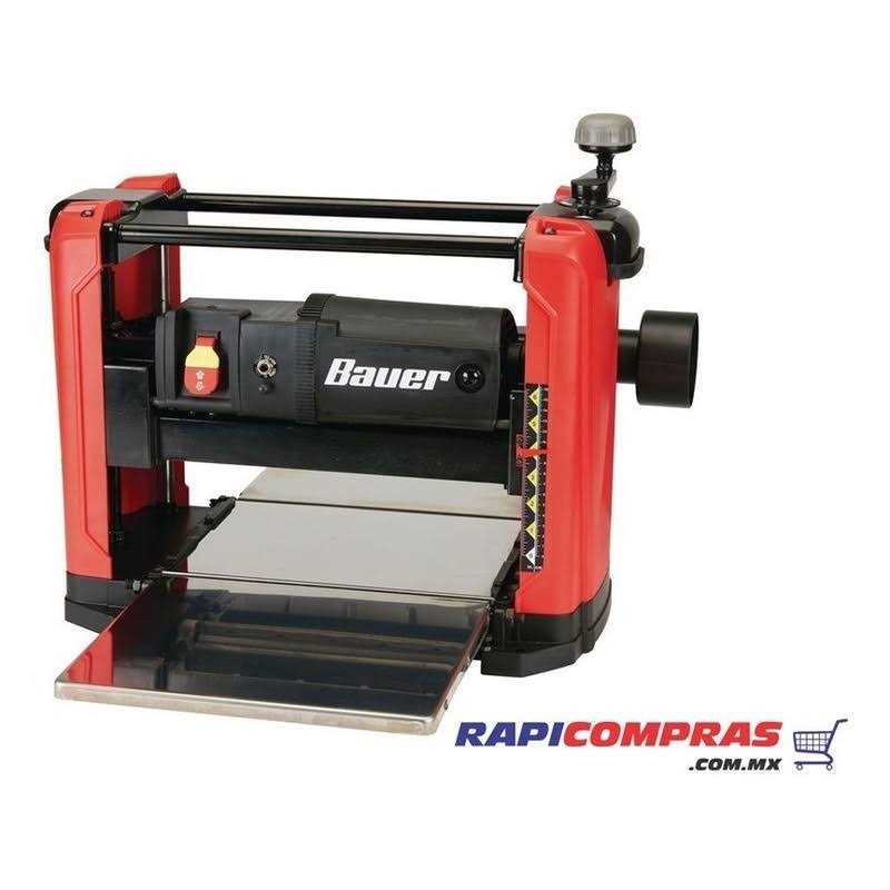 The Bauer 15 amp thickness planer has heavy duty power to quickly smooth fine grade hardwoods without nicks or sniping. The rock solid four column frame prevents chatter and torsion for satin smooth finishes. The planer has a smooth auto-feed feature for nick-free planing. Integrated safety switch prevents accidental startups. High precision gear and pinion lift system for easier, more reliable adjustment. Bauer 15 Amp 12-1/2 in.