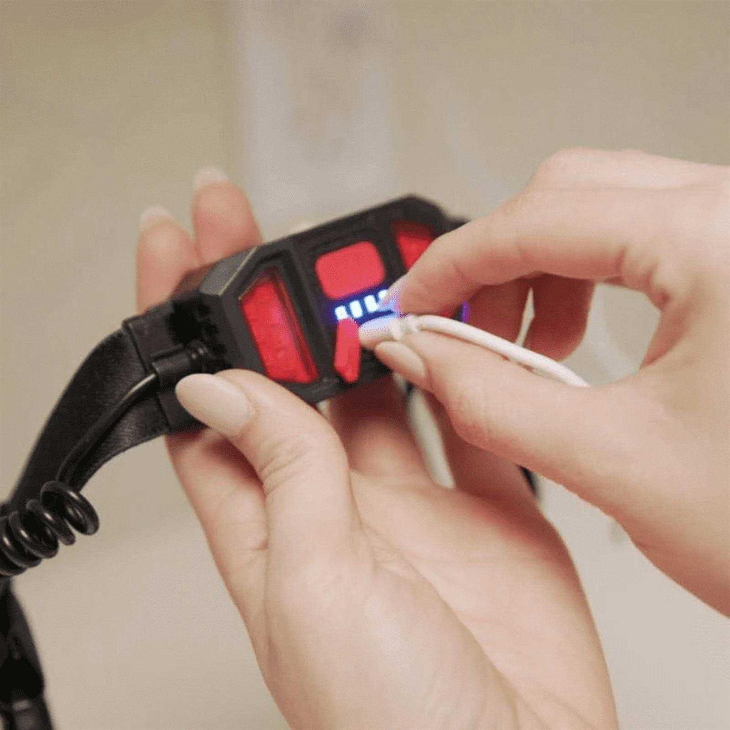 With 500 lumens and a 230 degree beam, this lamp is ultra bright. It has a front LED lamp and a rear red safety light. The built in rechargeable battery works up to 6 hours on a single charge. Perfect for running, camping, hiking, cycling, walking the dog and more.