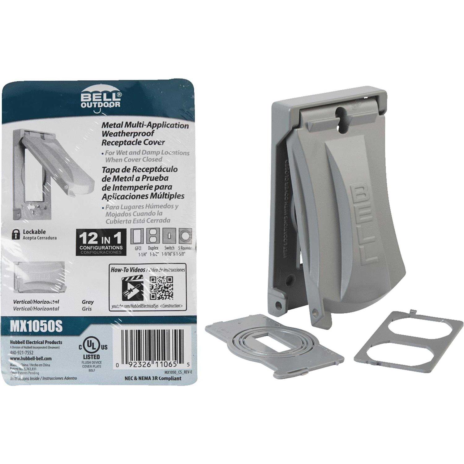 The Bell one-gang metal waterproof cover is made up of heavy duty, die-cast construction with a durable powder coat finish. It has technology with a patented universal fit adapter and a patented quick fit key hole mount installation that enables you to fit different size screws. This cover comes with a lockable tab and a spring hinge closure. The metal flat covers meet 2008 NEC standards for a horizontal or vertical mount.