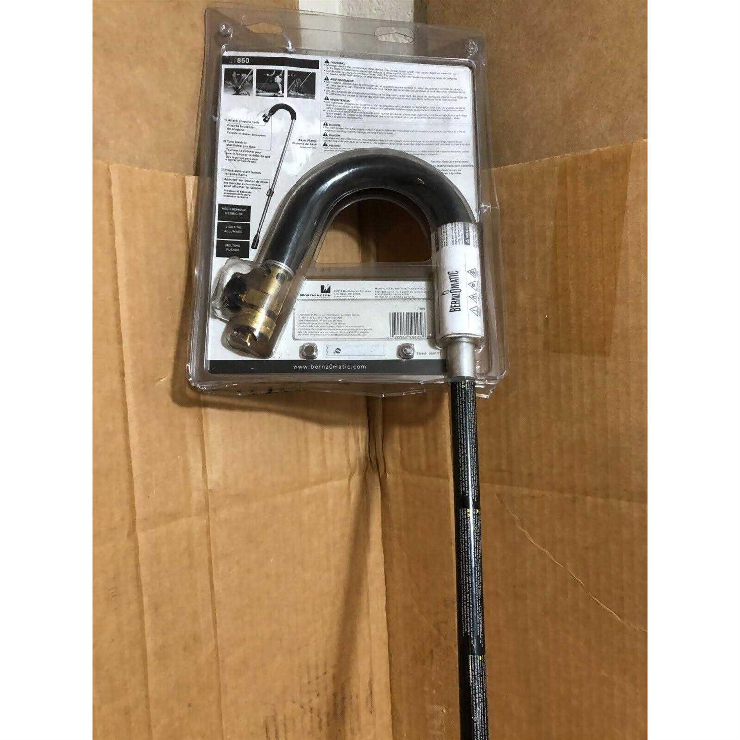 Bernzomatic 19425 JT850 Self-Igniting 20,000 BTU Outdoor Torch The Bernzomatic 19425 JT850 Self-Igniting 20, 000 BTU outdoor torch (DISCONTINUED by manufacturer) is specifically designed to produce a high-output flame for a wide variety of outdoor uses. you can use this torch to burn off weeds and leaves, start barbecues and campfires, control insects, melt ice from walkways, or patch asphalt cracks. This torch burns propane or map Gas and features an integrated trigger-start mechanism for quick flaming and an adjustable flame control knob. The BernzOmatic JT850 trigger-started outdoor torch is specifically designed to produce a high-output flame for a wide variety of outdoor uses. You can use this torch to burn off weeds and leaves, start barbecues and campfires, control insects, melt ice from walkways or patch asphalt cracks. This torch burns propane or mapp gas, and features an integrated trigger-start mechanism for quick flaming and an adjustable flame control. Product Features HIGH OUTPUT Produces large flame. Flame control valve easily sizes flame and extinguishes when finished. MULTIPLE USES Perfect for weed control, starting barbecues, melting ice and other outdoor jobs. Uses propane or MAPP gas. ADJUSTABLE Adjust flame control to fit each job. 36-inch reach for easy access with less bending or crouching. QUICK START Integrated trigger-start mechanism produces flame quickly. MADE IN USA Manufactured in the United States.