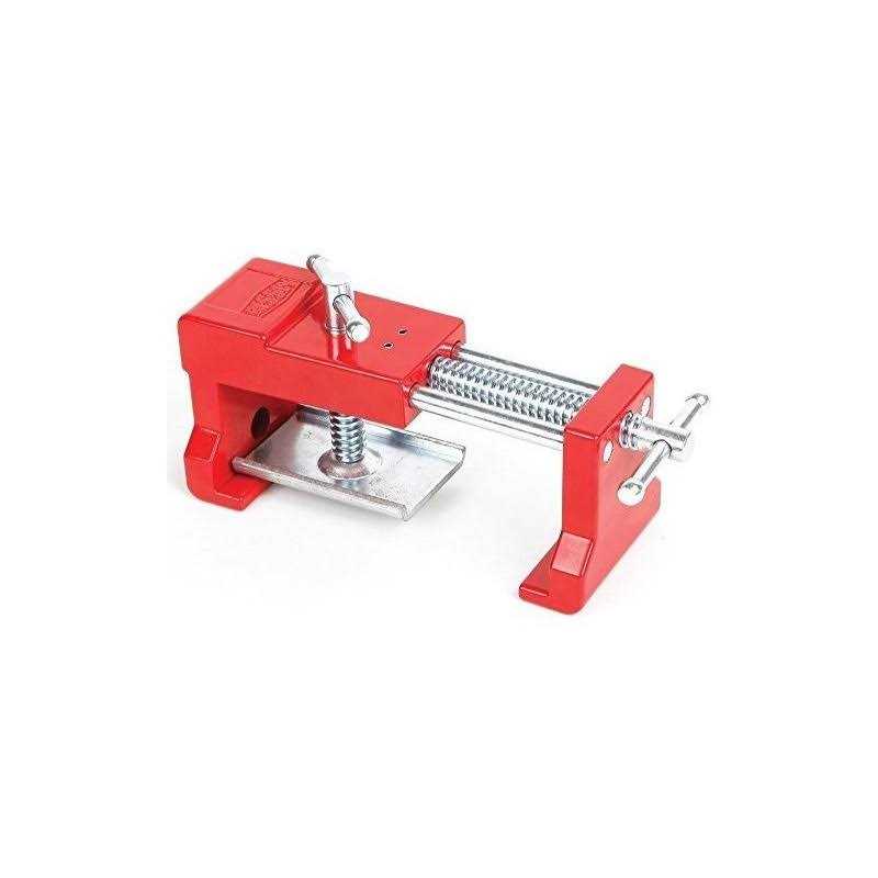 This item consists of two 2 clamps. The Bessey face frame cabinetry clamp is designed to combine the multiple steps of face frame cabinet installation into one easy process. It works on stiles up to 1-1/4 in. thick and has a clamp capacity of 4 in. The design of this clamp allows you to tighten, align, pre-drill and fasten the cabinet stile, all while the clamp is in place. The clamp holds the individual cabinet edges together while keeping the faces along the joint flush. Drill your pilot hole using the integrated pilot-hole drilling guide located on the clamp side. Then simply flip the guide out of the way to drive your screws in to connect the cabinet frames. There is no need to remove or reposition the clamp! Professional quality installation is achieved in a fraction of the time compared to the use of more conventional clamps. This heavy-duty clamp is made primarily of steel, with steel sliding T-bars and an aluminum alignment plate. It comes with 3 non-marring felt pads for the clamp faces and alingment plate to protect and cushion the points of contact on your cabinets.