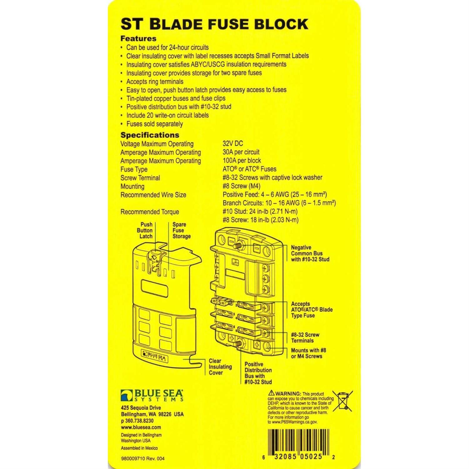 Blue Sea 5025 St Blade Fuse Block- 6 Circuit w/Negative Bus