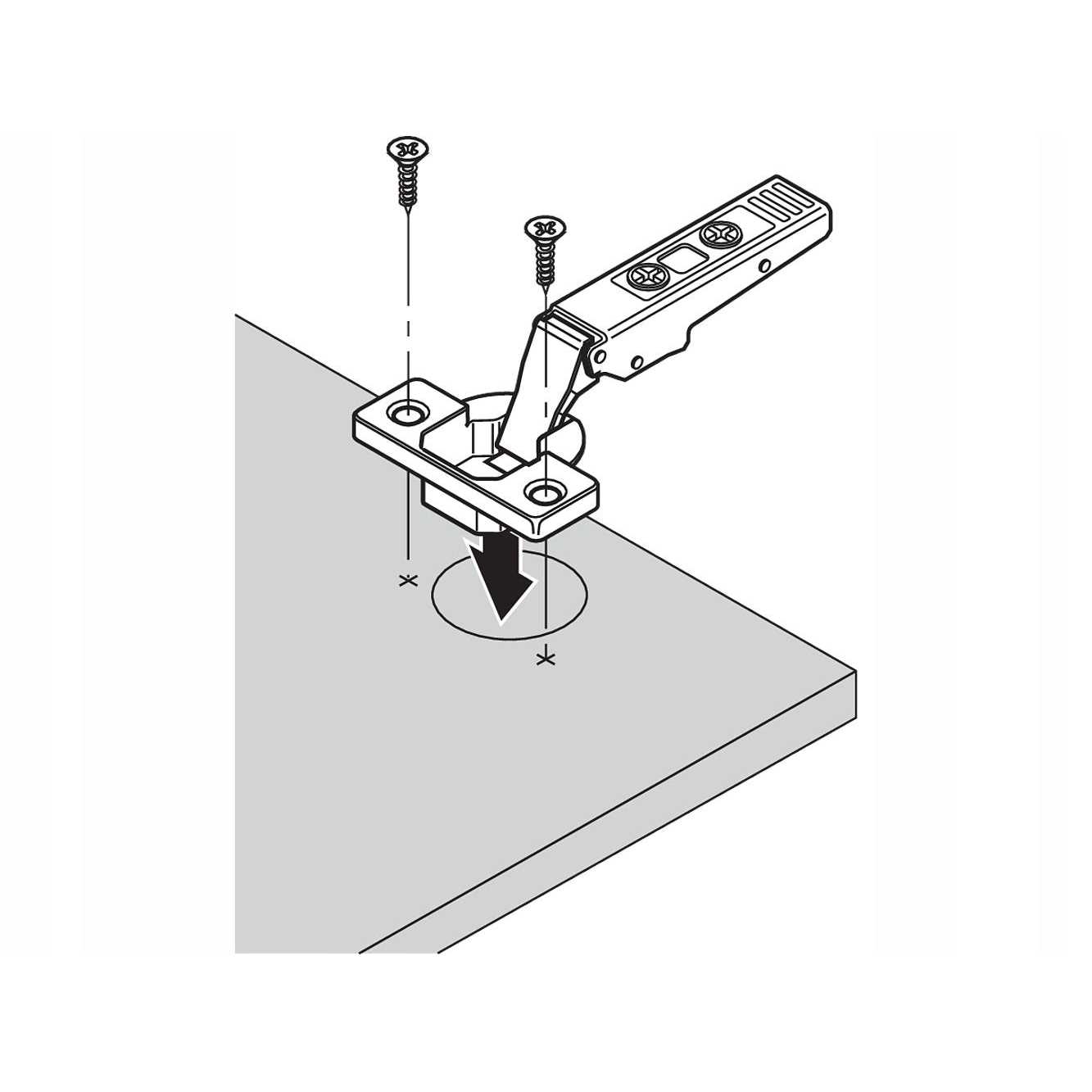 Complete your cabinet or kitchen project with our high quality Blum hinges which have been designed specifically to suit cabinets and cupboards in kitchens. The unique design allows the hinge to open at a 110° angle and be concealed behind the cupboard/cabinet door. Designed to be used in applications where the door sits in front of the carcass of the cabinet. Comes complete with adjustable positioning hinge plate suitable for 18mm thick cabinet carcass. Features: All metal, nickel plated hinge 110° opening angle, spring-closure mechanism for automatic closure. Tool-free door to cabinet assembly and removal 3-dimensional adjustment (with relevant mounting plate Requires 35mm hinge hole required in back of door.