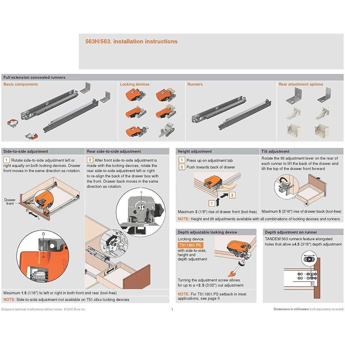 Blums newest generation of TANDEM plus BLUMOTION concealed drawer runners offers four-dimensional adjustment, elongated holes for depth adjustment, bottom mount holes and exceptional load capacity (100 lb. static load). TANDEM plus BLUMOTION concealed runners are made in the USA at Blums North Carolina facility. This is just one example of Blums commitment to manufacturing in the US, for the US. TANDEM plus BLUMOTION is mounted discreetly beneath the drawer and has the quietest opening and closing action available. This top-of-the-line concealed runner is the industry choice for dovetail drawers in high-end cabinetry, in either face frame or panel. For installation on both face frame or frameless cabinet drawers Fully concealed drawer slides are full extension Designed for drawers that are 1/2″ to 5/8″ thick. Requires notch and hole drilled on back underside of drawer box. Everything you need!