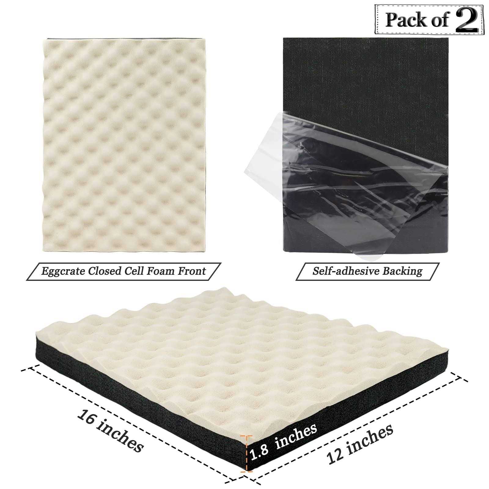 BXI Soundproofing Closed Cell Foam 2 Pack Self-Adhesive 16” X 12” X 1.8” Thickened Egg Crate Sound Proof Foam