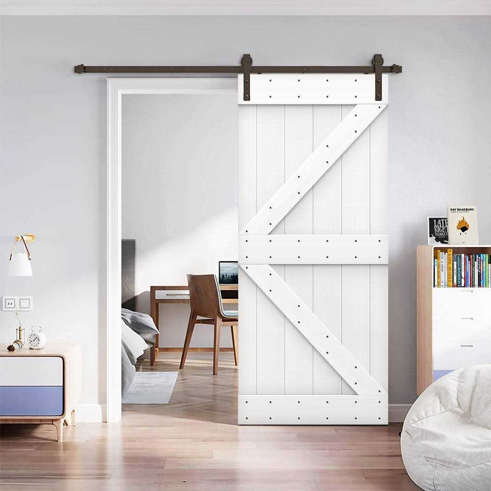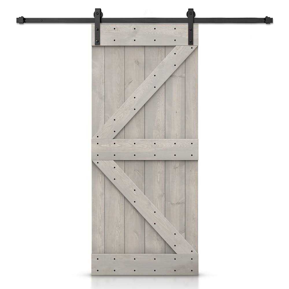Paneled Wood Painted K Series DIY Barn Door with Installation Hardware Kit CALHOME Finish: White, Hardware Finish: Matte Black, Size: 34″ x 84″