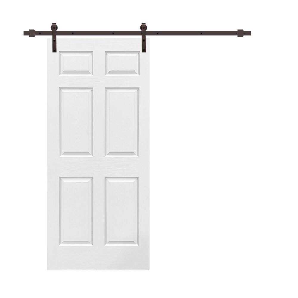 CALHOME Composite MDF 6 Panel Interior Sliding Barn Door with Hardware Kit, White Primed
