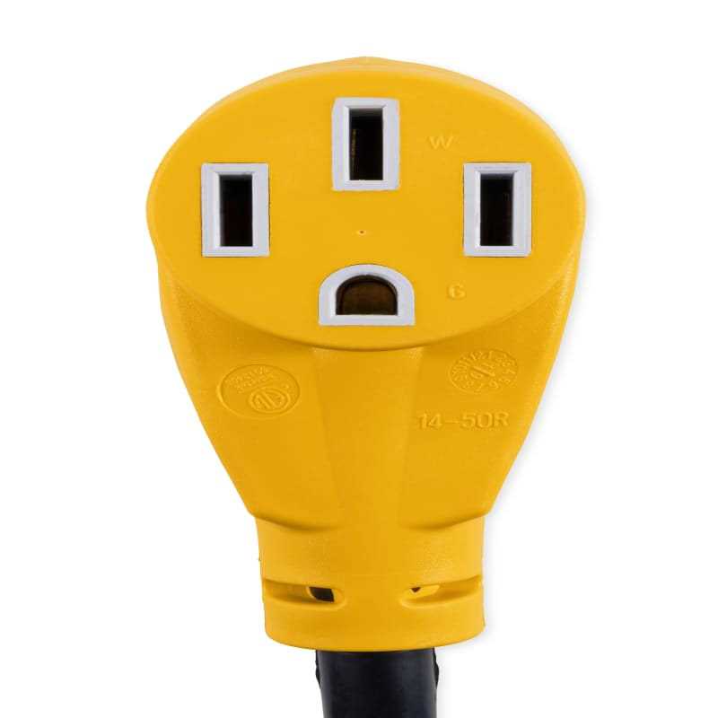 - Plug is NEMA connector 14-50P and receptacle is NEMA connector 14-50R