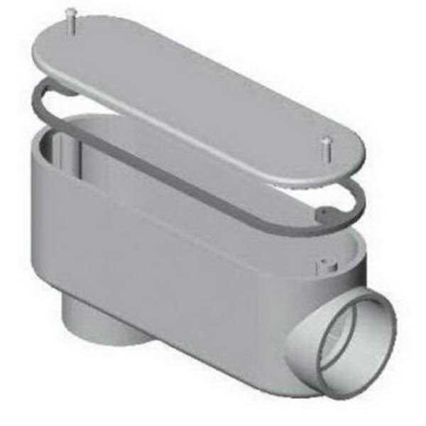 Rigid non-metallic Type LB conduit body. For easy access and pulling of wires through conduit run. For use with Schedule 40 non-metallic solvent weld fittings. Will not rust or corrode. With textured lid and foam-in-place gasket. Hubs are not threaded. UL listed, RoHS Compliance.