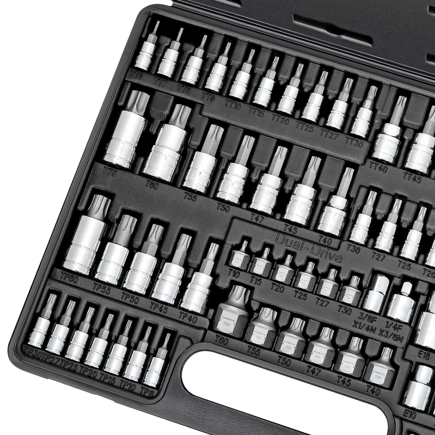 Carbyne Master Torx Bit Socket Set & Torx External Socket Set, 74 Piece | S2 Steel Bits, CRV Sockets | 1/4-Inch, 3/8-Inch & 1/2-Inch Drive 3101591