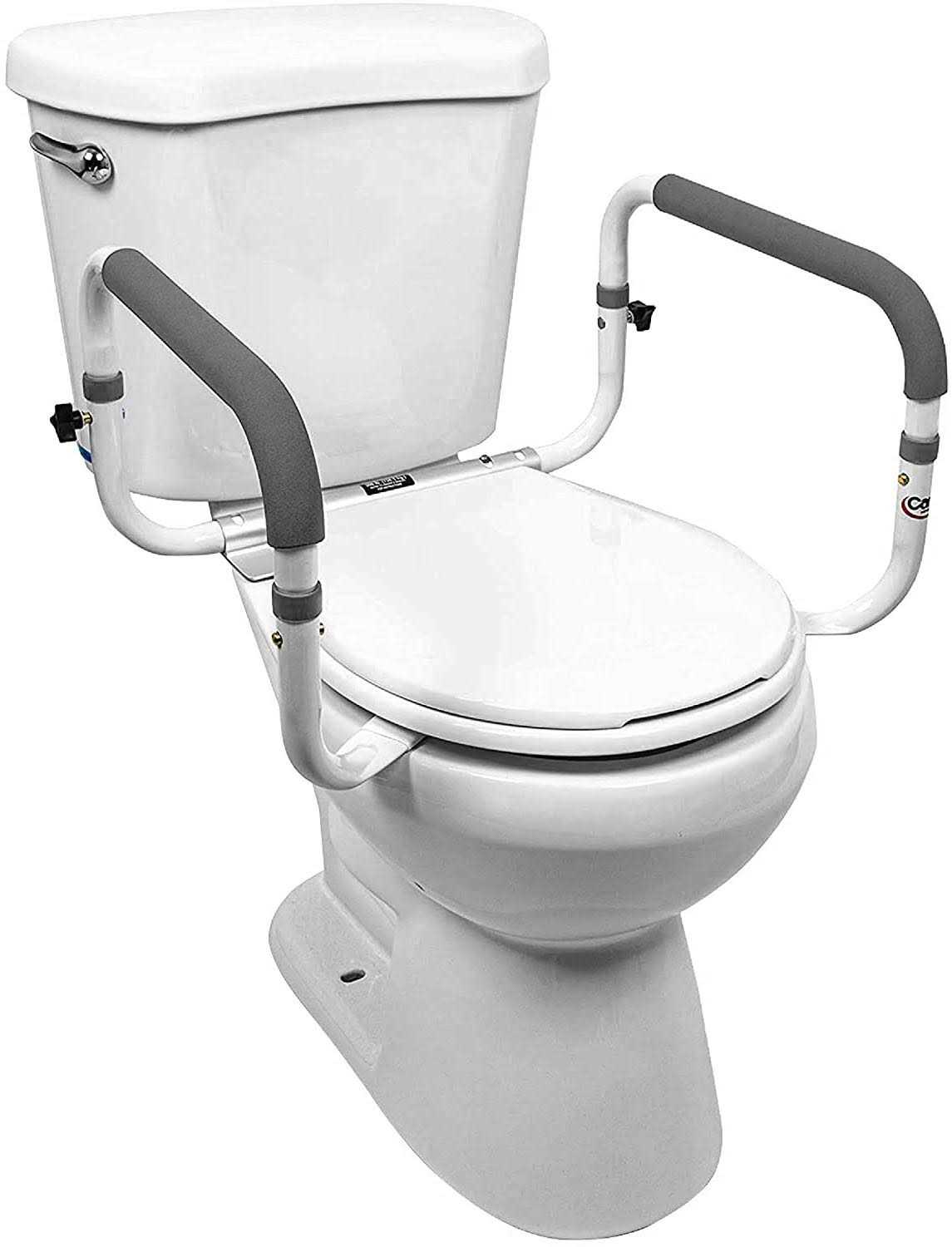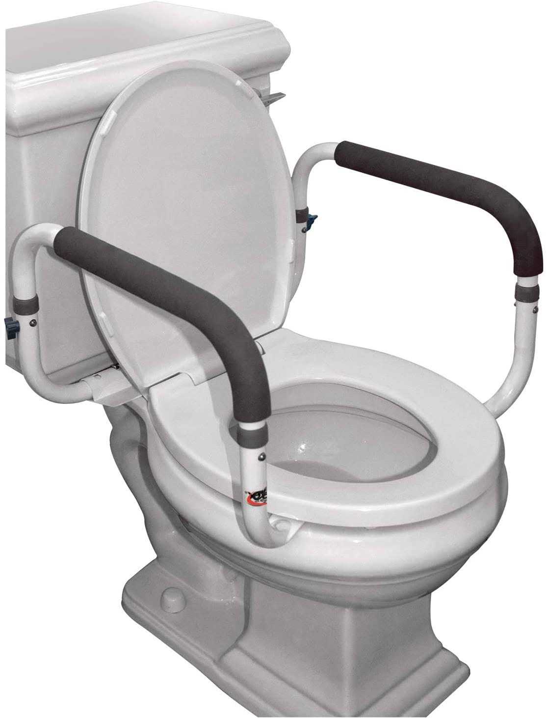 Add a new level of bathroom safety and independence with the Carex Toilet Support Rail. The toilet safety rail attaches directly to the toilet for a firm and tight fit. It’s width adjustable from 16 to 18 to fit most standard toilets. Toilet support bars offer a source of support for users to sit or stand safely. Its compact size makes it easy for storage or travel. The toilet seat rail features Hypalon cushioned hand grips for soft hand comfort.nnProduct FeaturesnnAdd a new level of bathroom safety and independence with the Carex Toilet Support Rail. The toilet safety rail attaches directly to the toilet for a firm and tight fit. It’s width adjustable from 16 to 18 to fit most standard toilets. Toilet support bars offer a source of support for users to sit or stand safely. Its compact size makes it easy for storage or travel. The toilet seat rail features Hypalon cushioned hand grips for soft hand comfort.