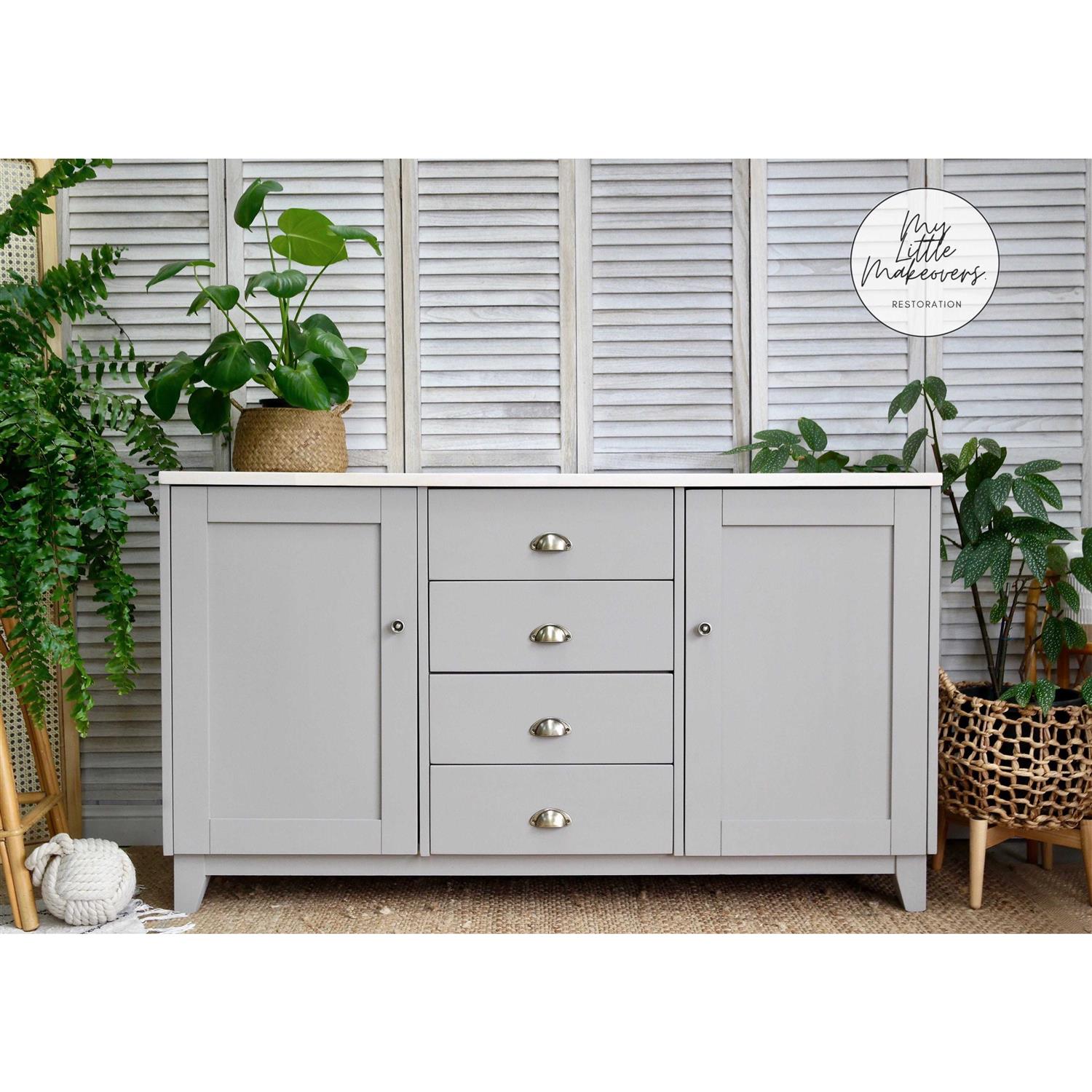 Dixie Belle Chalk mineral paint for furniture in the colour French Linen is a light taupe. With a warm and weathered mix of brown and grey, this gentle colour naturally reflects light. Use French Linen to create a polished and peaceful ambiance in any room of your home. Whether your style is modern farmhouse or contemporary, this refined colour is truly timeless! Dixie Belle Paint can be mixed and matched to create any custom colour you can imagine!