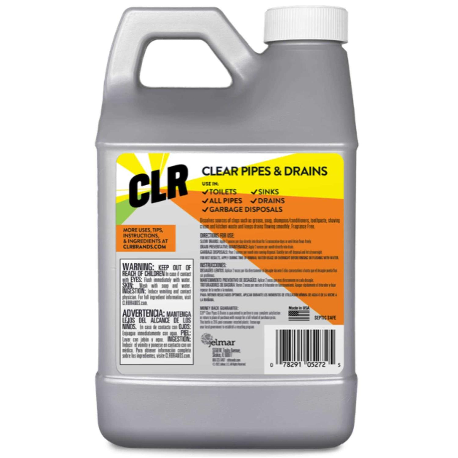 Drain Openers by CLR. Details:CLR Build up remover is a preventative maintenance product. It dissolves sources of clogs such as oil, soap scum, shampoo, conditioners, shaving cream, toothpaste, and kitchen waste and to keep drains flowing smoothly. Use monthly in sinks, toilets, showers, drains, garbage disposals and grease traps. Fragrance free. SAFE for septic systems and ALL Pipes! Part of the EPA Safer Choice program.