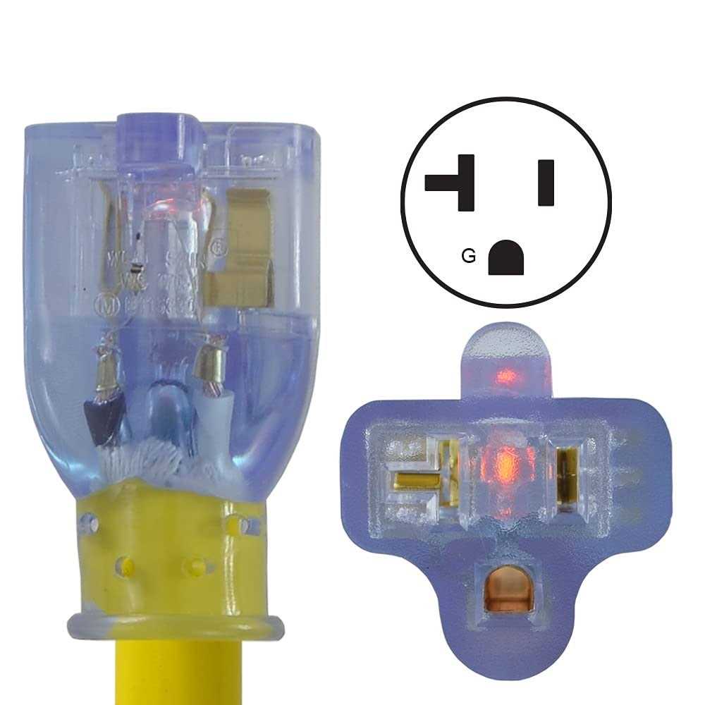 Cords, Plugs & Adapters by Conntek. Details:This pigtail adapter has a molded 20A, NEMA L5-20, male plug that is commonly found on generators. The T-slot design on the female connector accepts devices using a straight blade 15A (NEMA 5-15) or a 20A (NEMA 5-20) plug. The female connector also features a built-in power indicator light that illuminates when the power is connected.