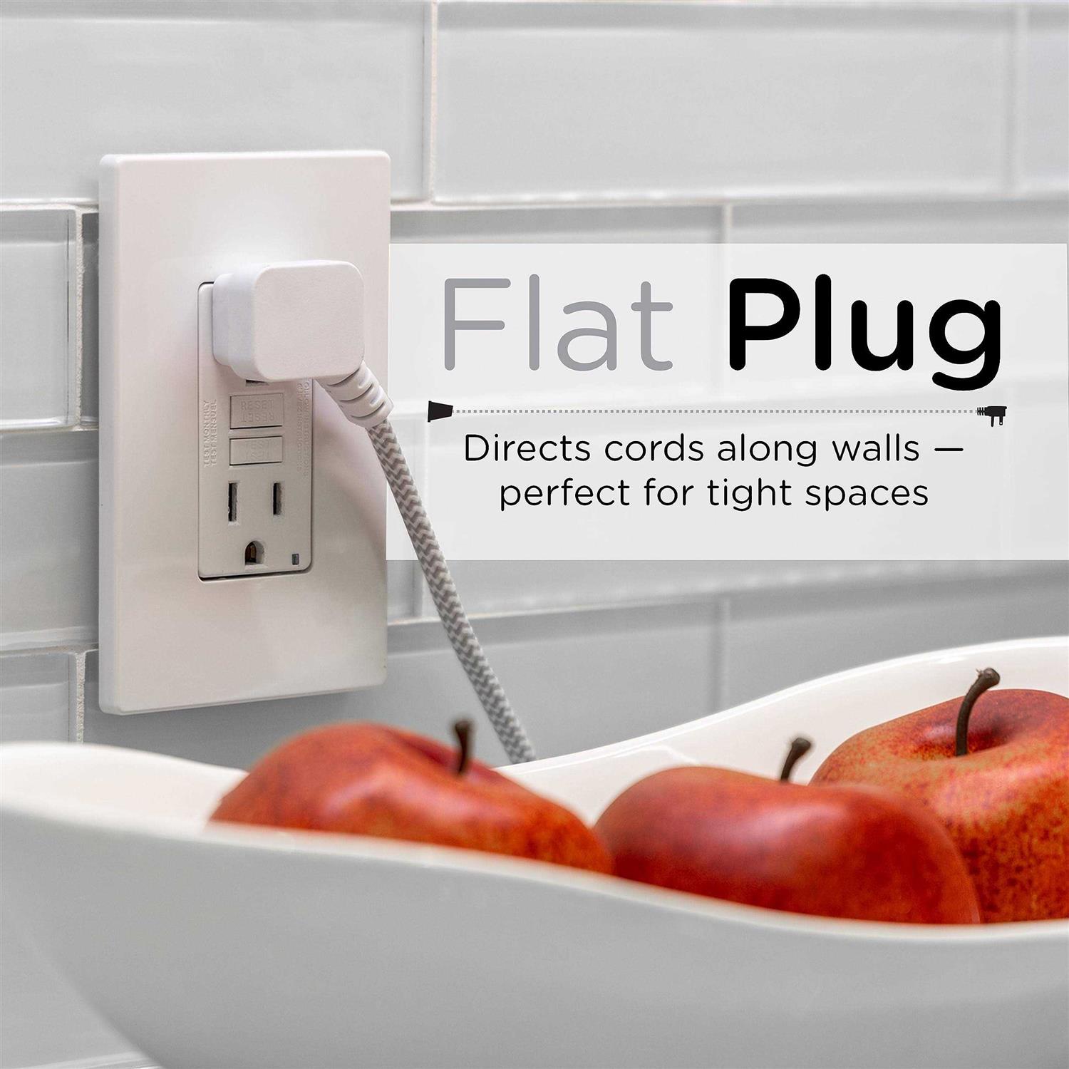 - Flat Plug The sleek design of the low-profile flat plug allows your furniture and media to sit closer to the wall.