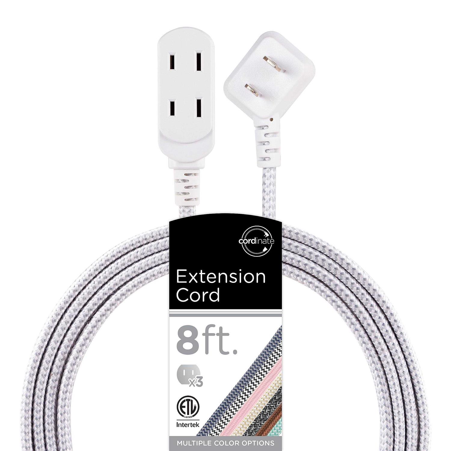 Extend your style into the future with the Cordinate 3 AC Extension Cord. This unique designer cable contributes to the overall charm of your space without interrupting or distracting from your home’s décor. With three polarized outlets the extension cord is ideal for powering lamps fans and other household electronics while the extra-long 8-foot cord keeps everything within reach. Additionally the low-profile plug makes it easy to plug in where space is limited. To prevent accidental shocks the extension cord includes slide-to-lock safety covers on each outlet. For a premium design that offers equal parts fashion and function choose the Cordinate 3 AC Extension Cord.